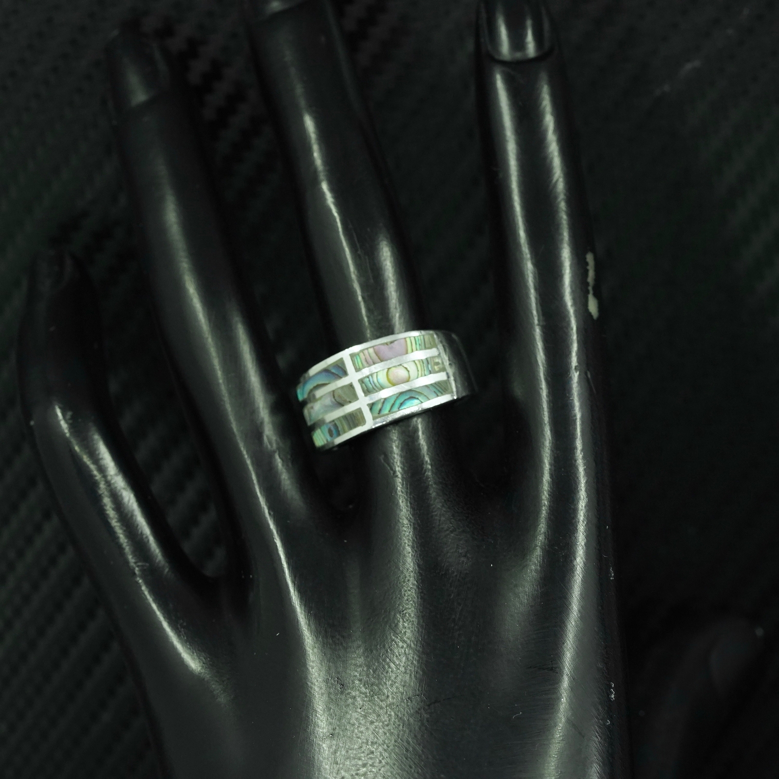 size 6.5 vintage sterling silver 925 handmade band ring with abalone inlay