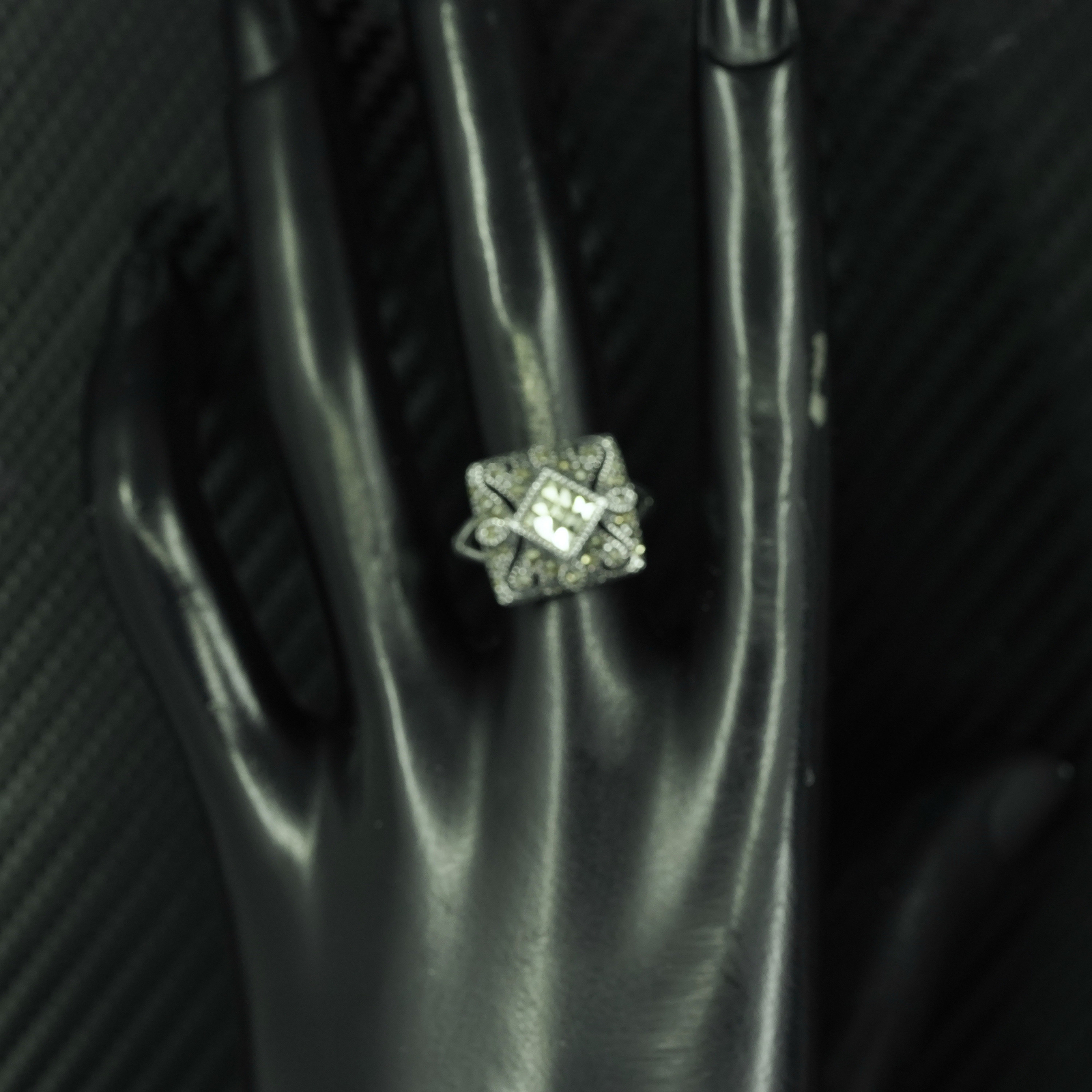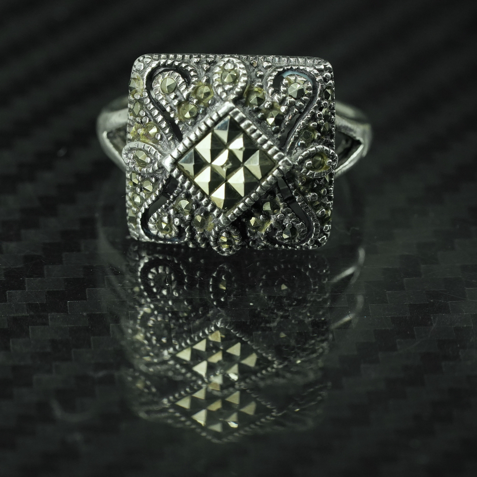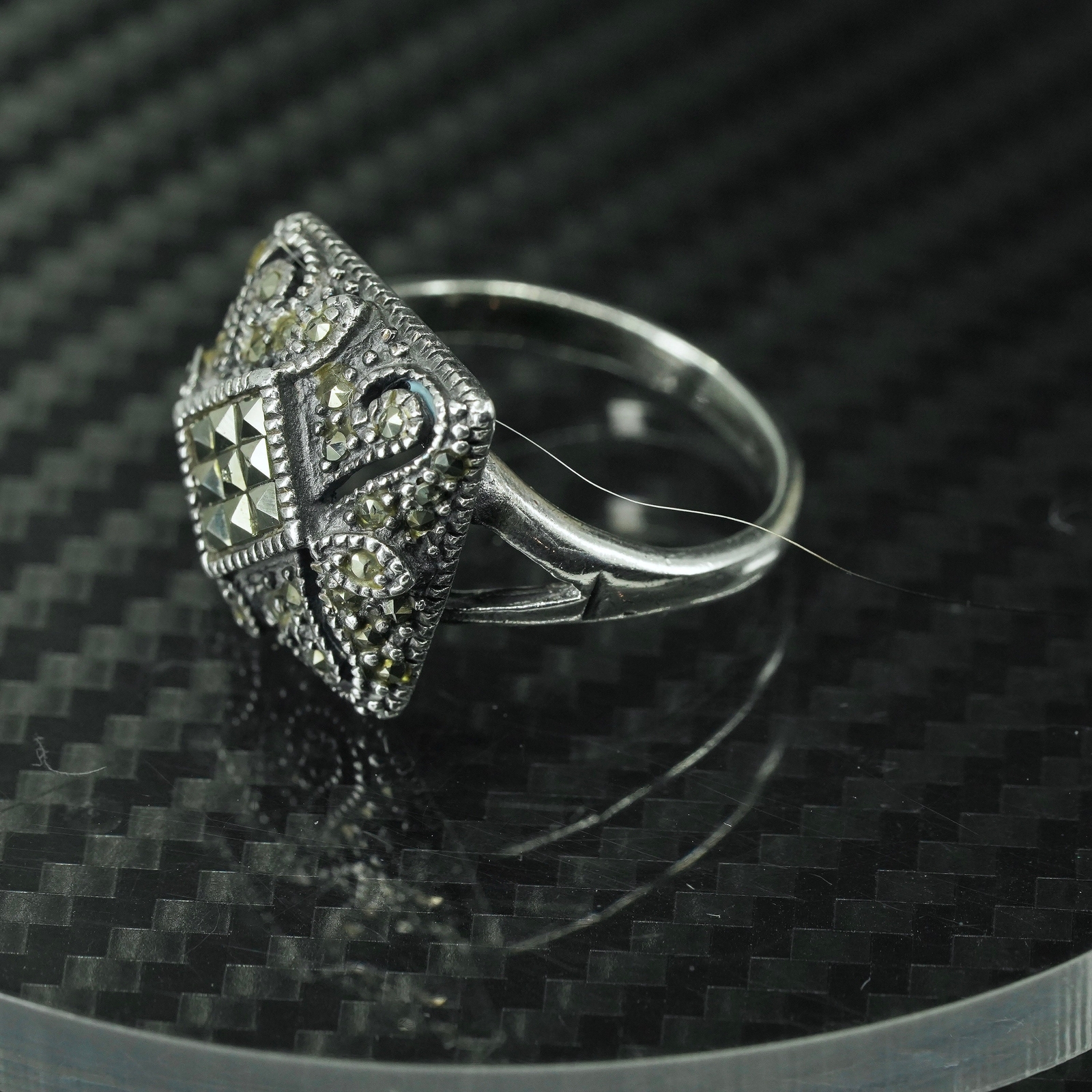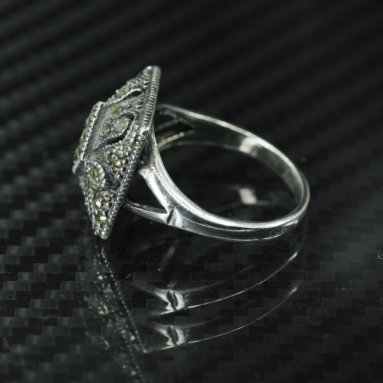 как выглядит Size 7, vintage sterling silver 925 statement ring with cluster marcasite фото
