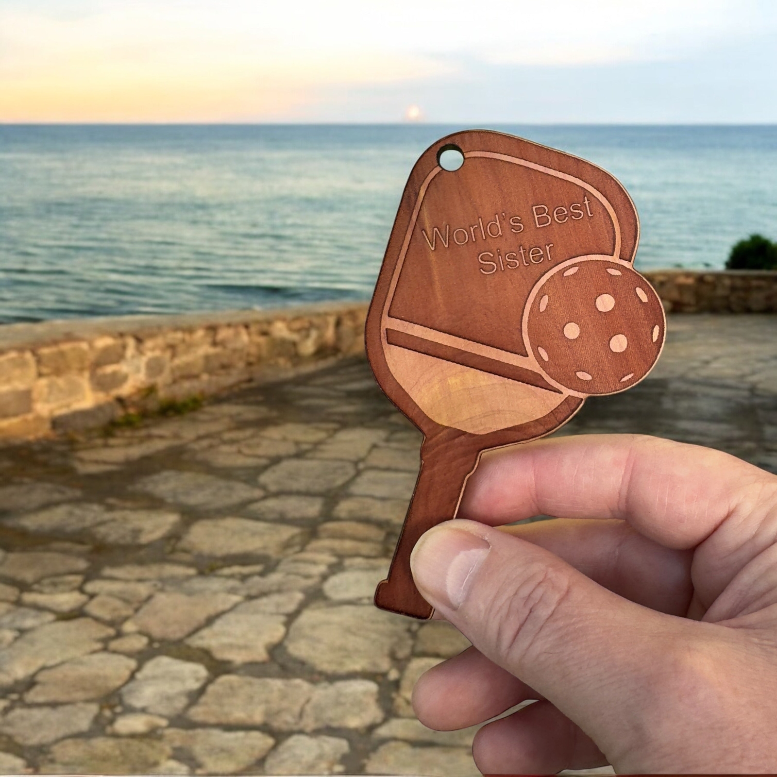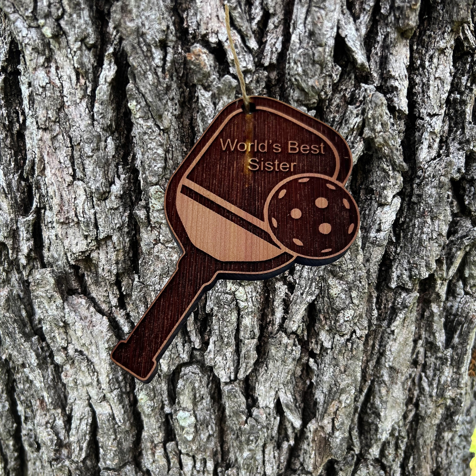 Worlds Best Sister Pickleball - Cedar Ornament
