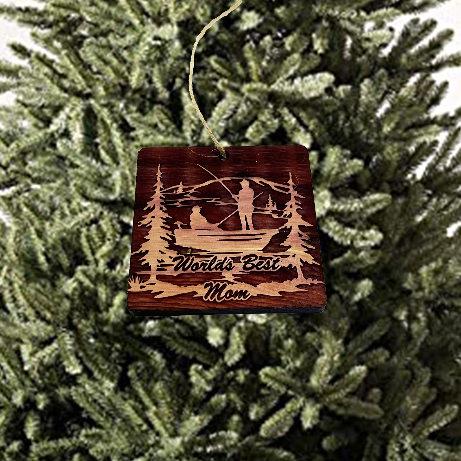 как выглядит Worlds best Mom Fisherman - Cedar Ornament фото