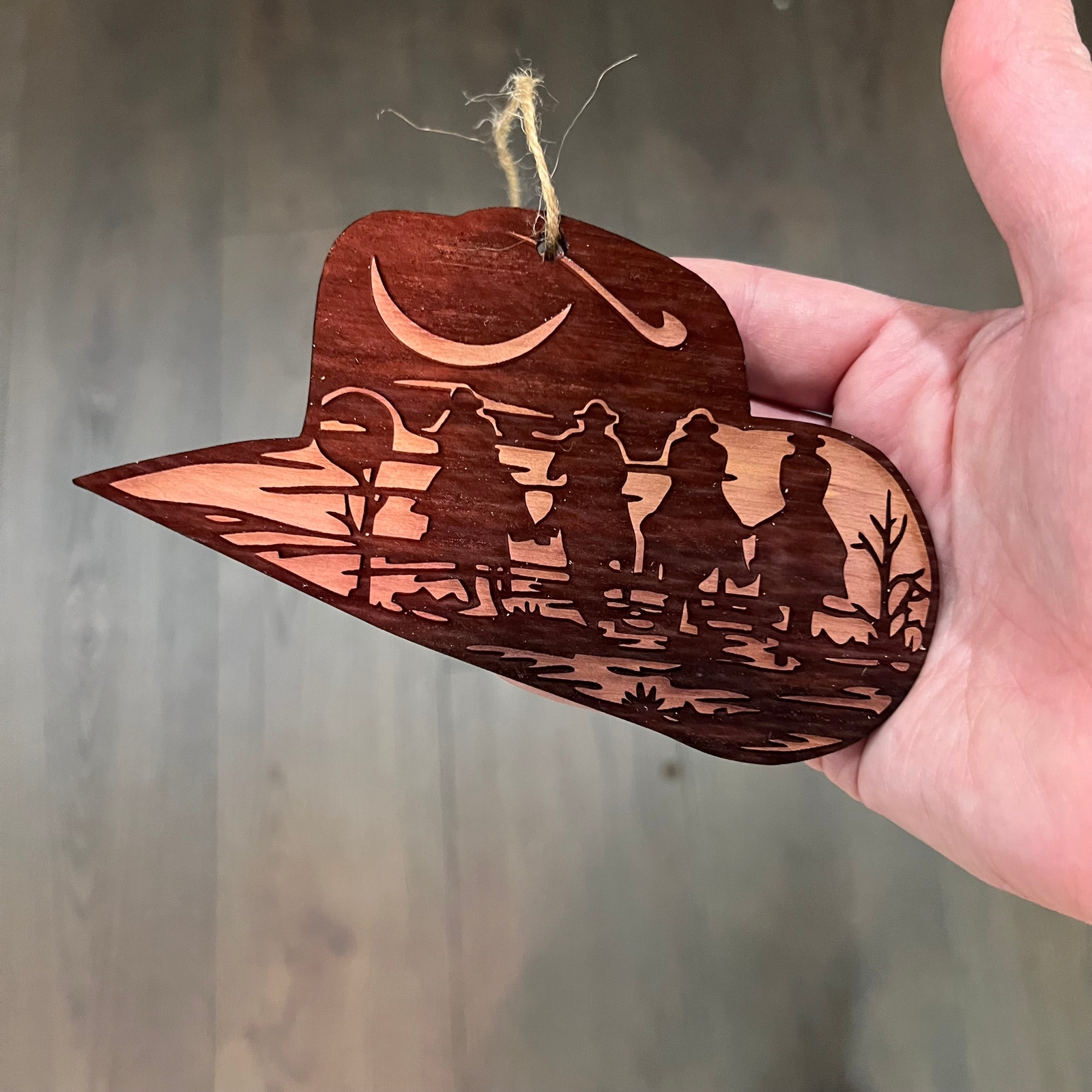 Cowboy Hat with Cowboys - Cedar Ornament
