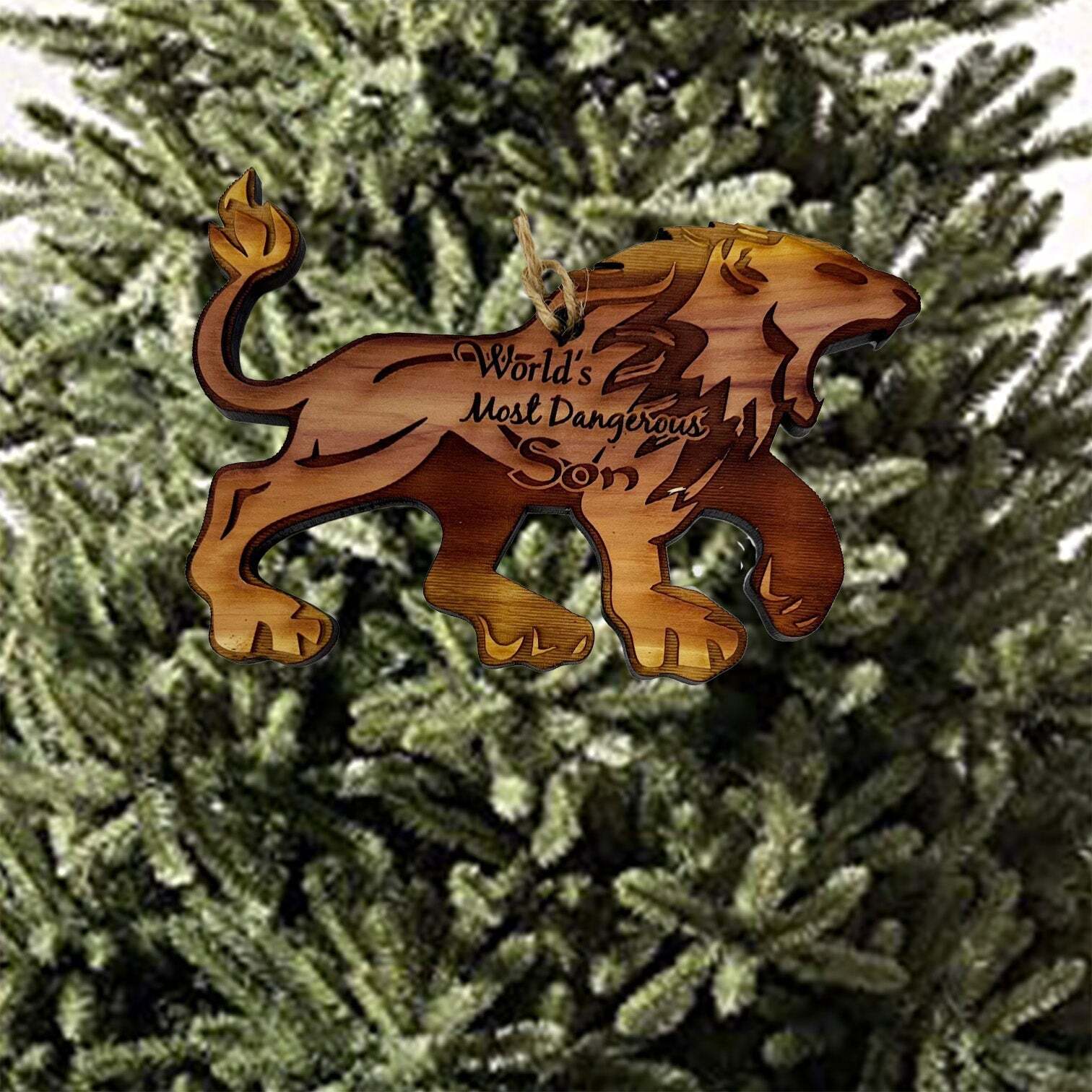 LION Worlds Most Dangerous Son - Cedar Ornament