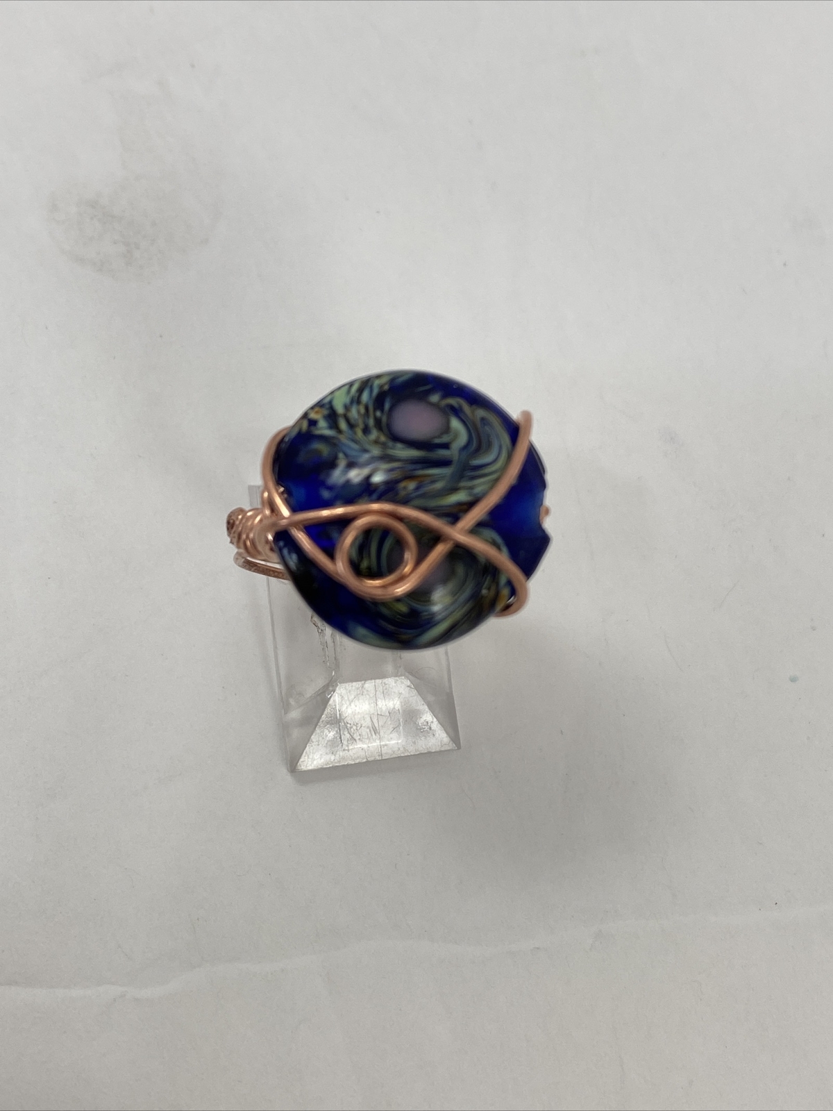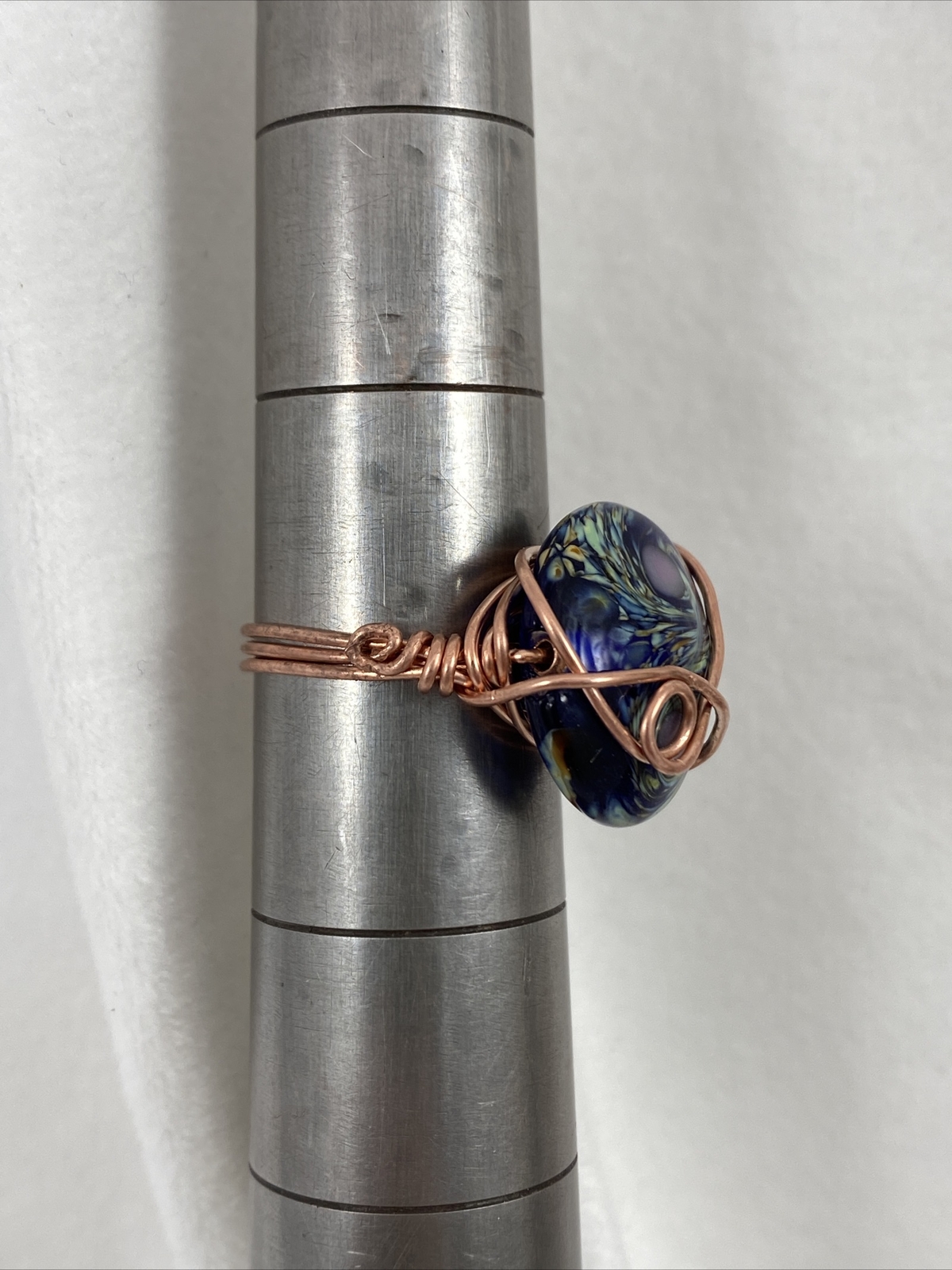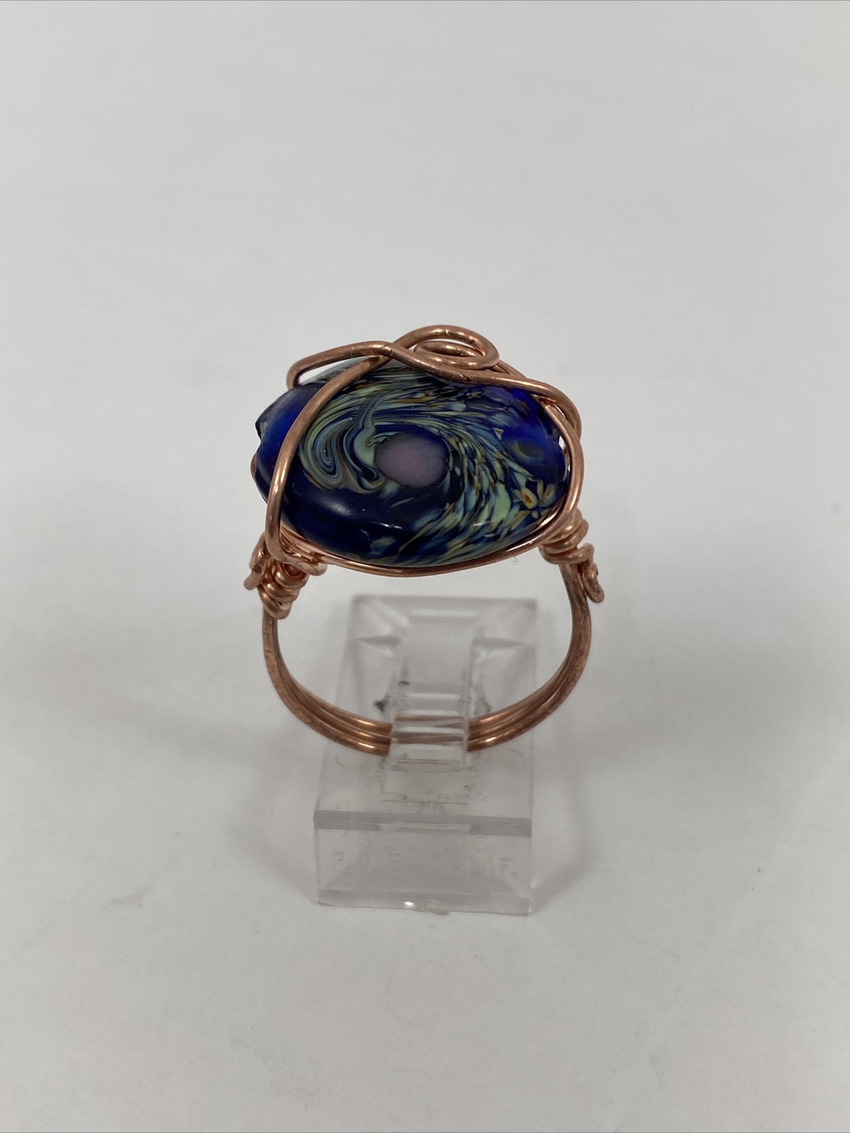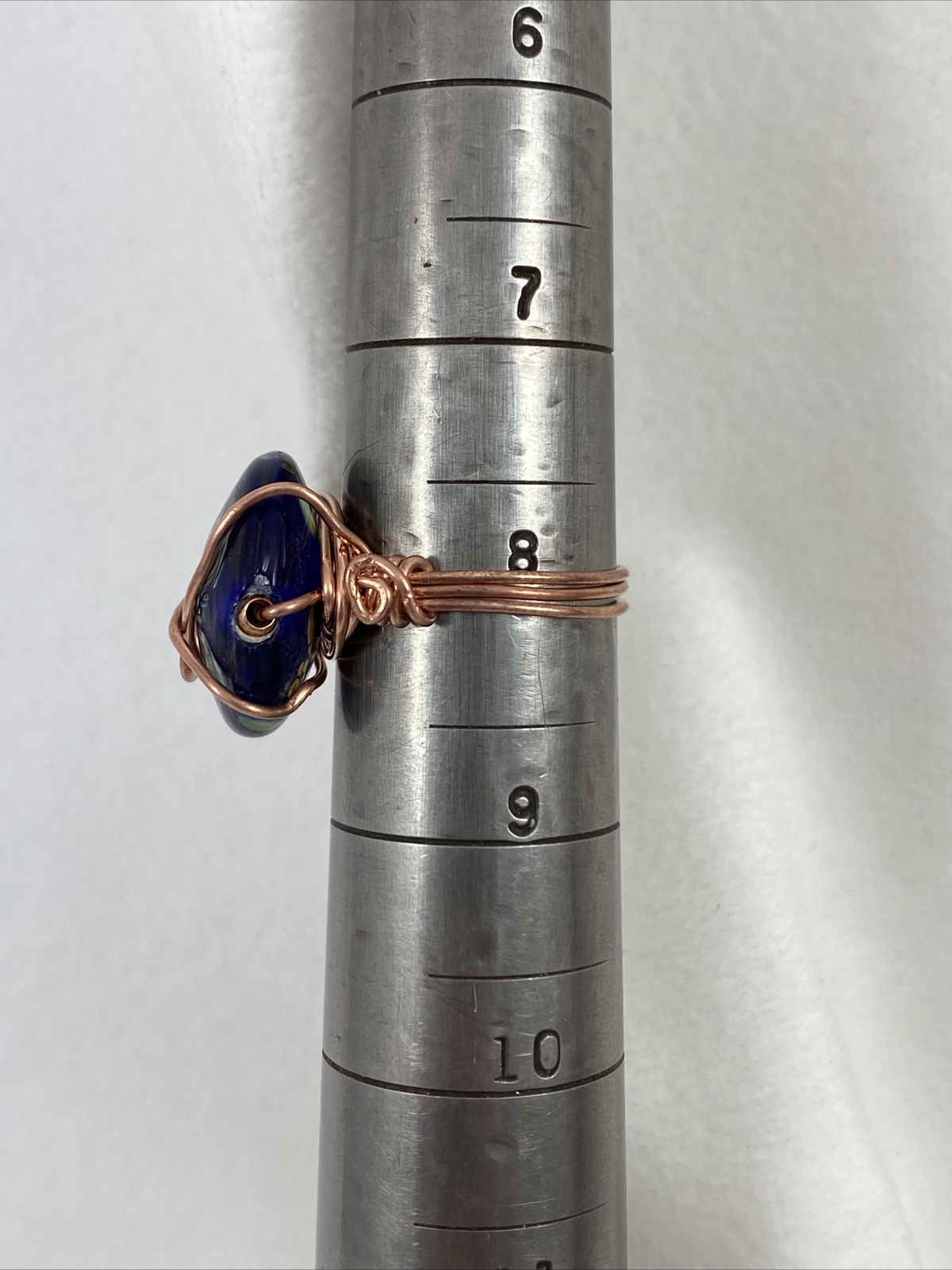 Handmade Copper Wire Wrap Glass Bead Ring Size 8 123