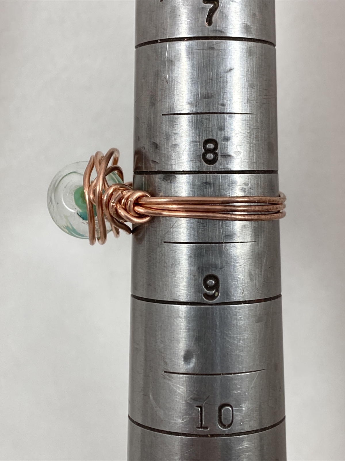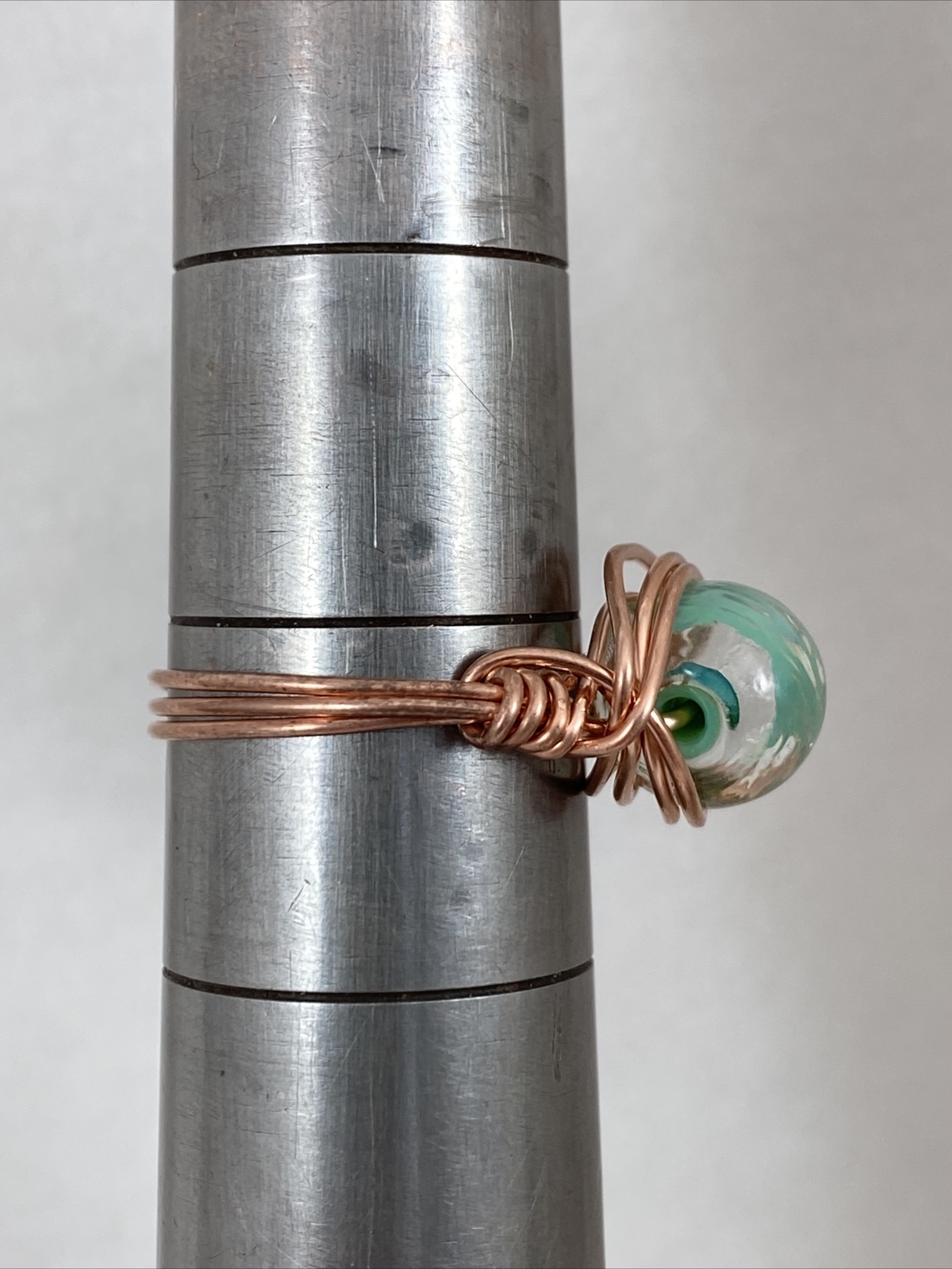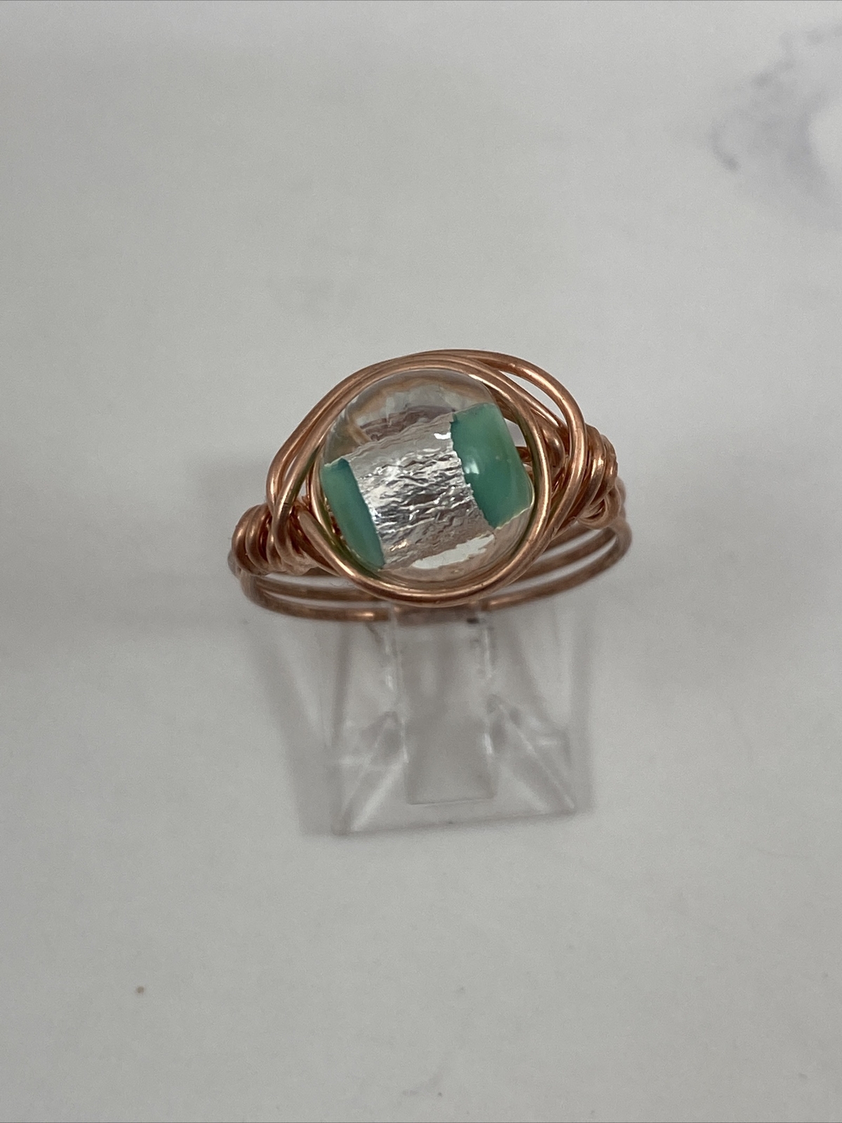 как выглядит Handmade Copper Wire Wrap Green Glass Bead Ring Size 8 1/4 132 фото