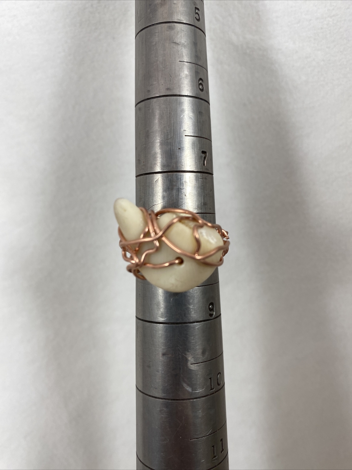 Handmade Copper Wire Wrap Coral Bead Ring Size 8 173