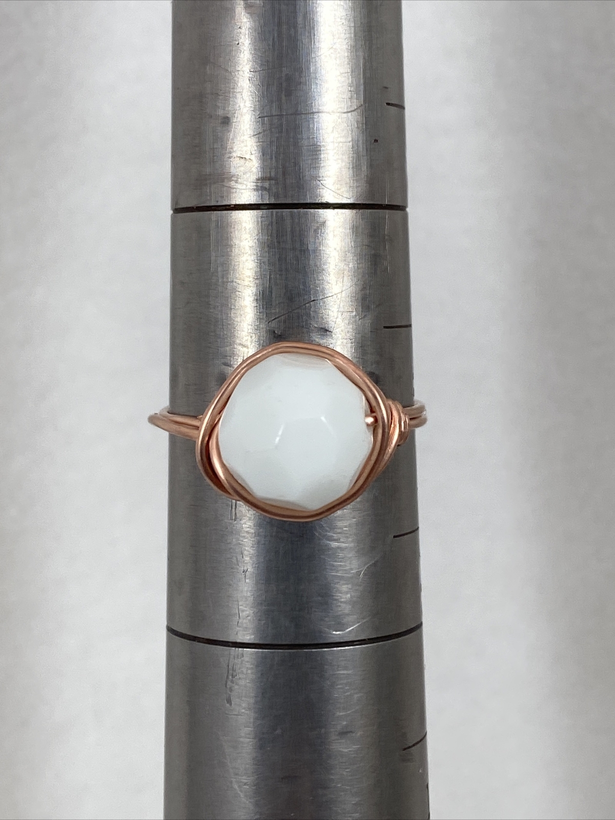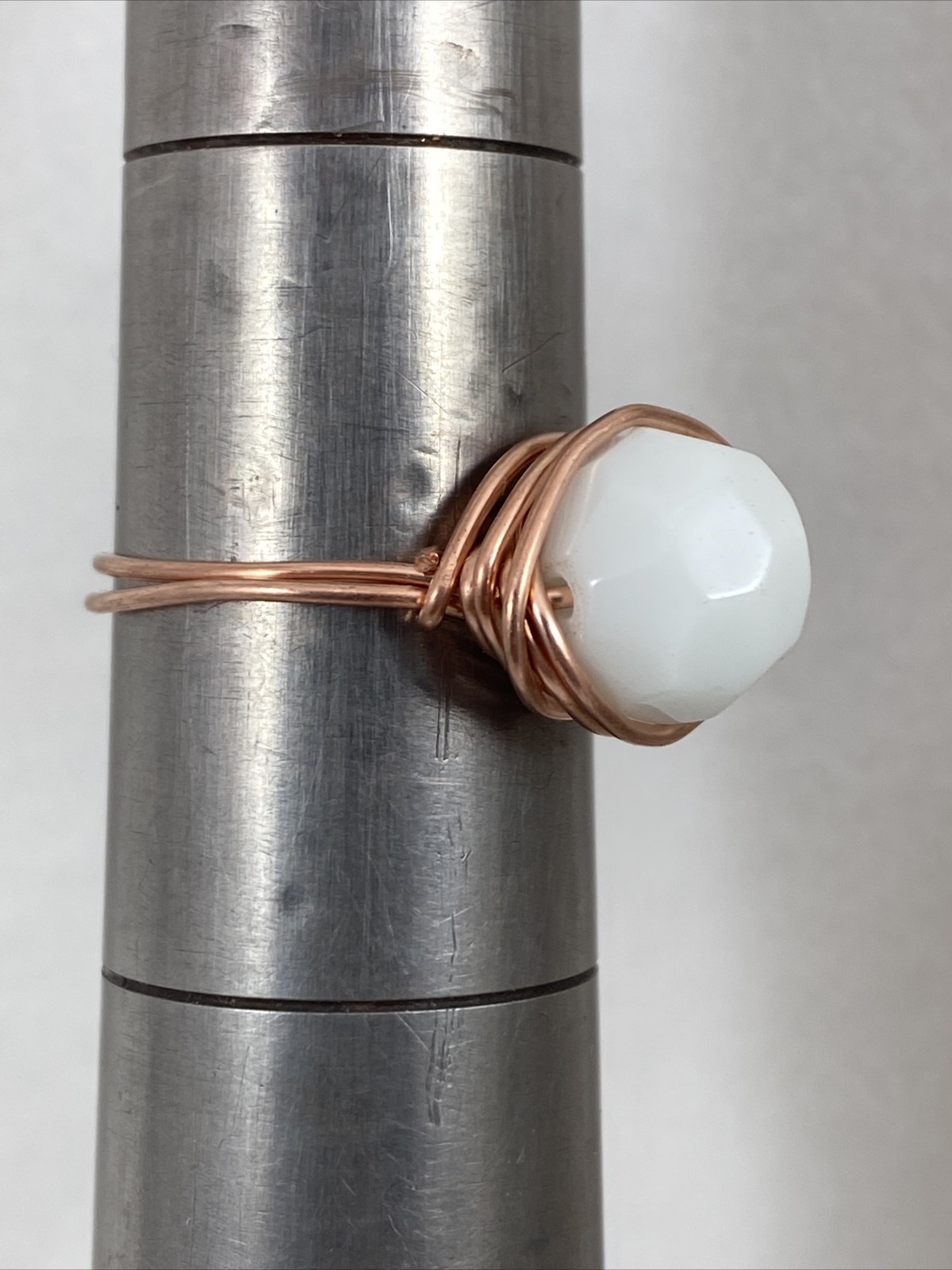 Handmade Copper Wire Wrap White Milk Glass Bead Ring Size 8 167