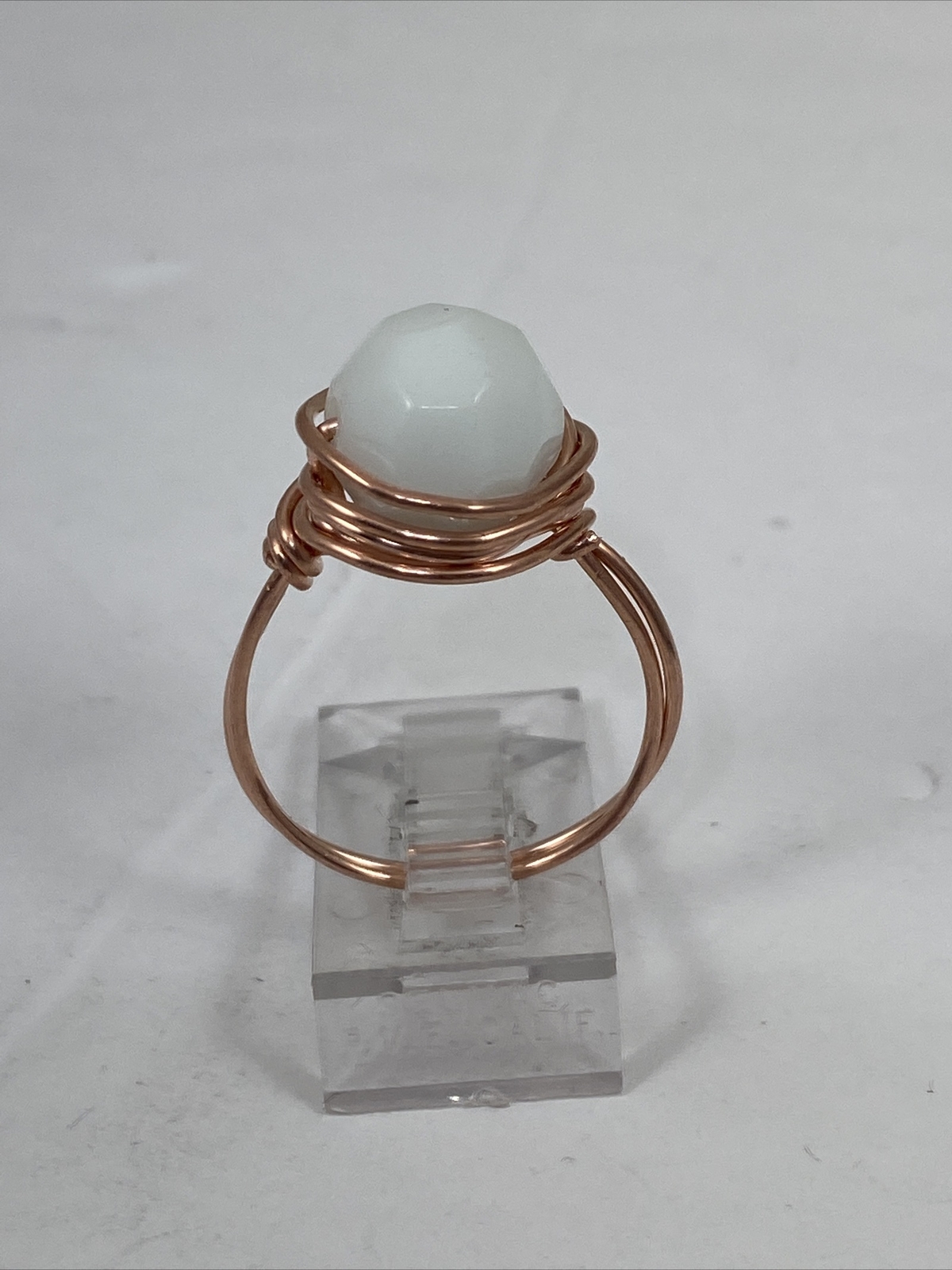 как выглядит Handmade Copper Wire Wrap White Milk Glass Bead Ring Size 8 167 фото