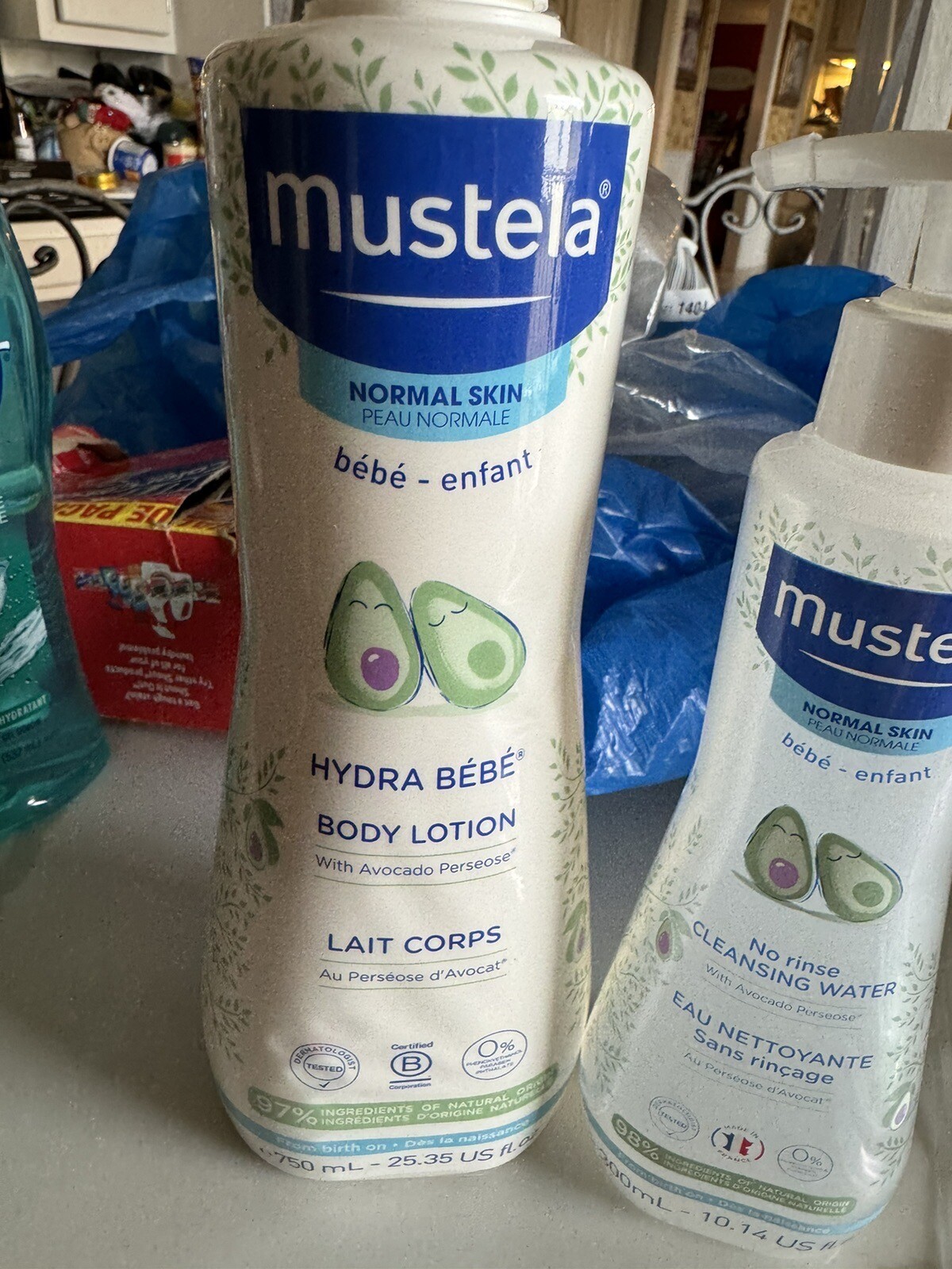 как выглядит Mustela 750ml Body Lotion With Broken Pump And 300ml Cleansing Water фото