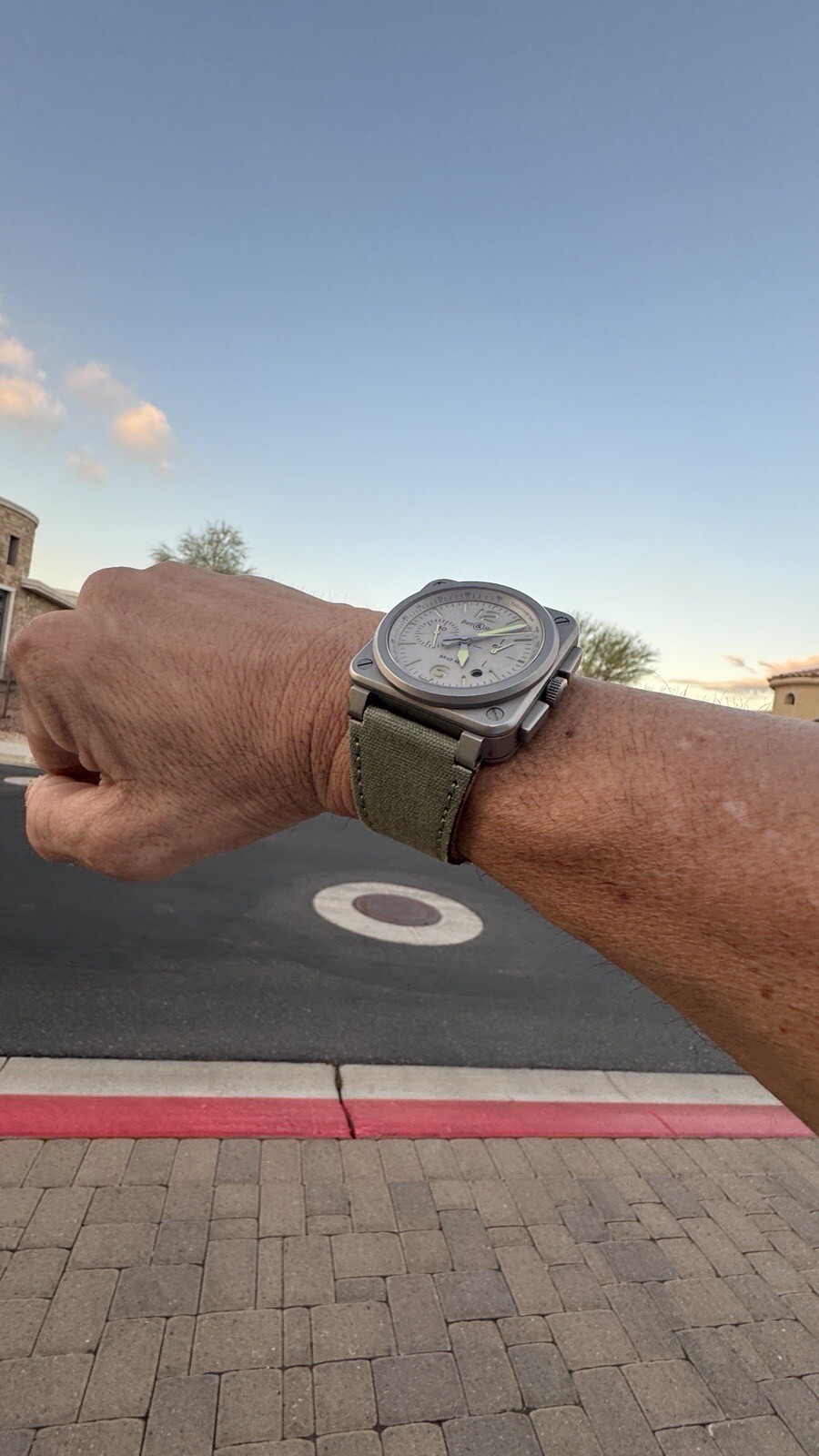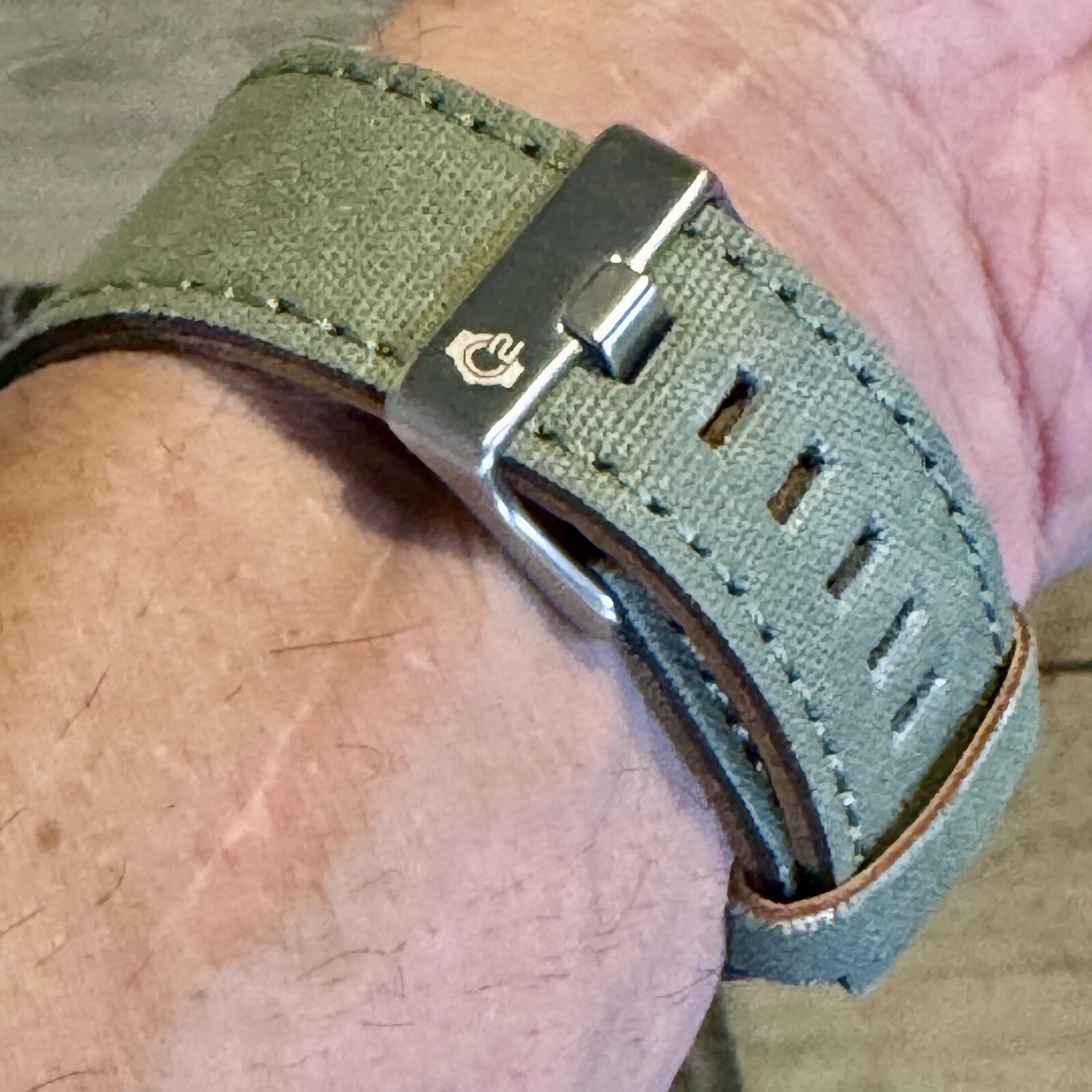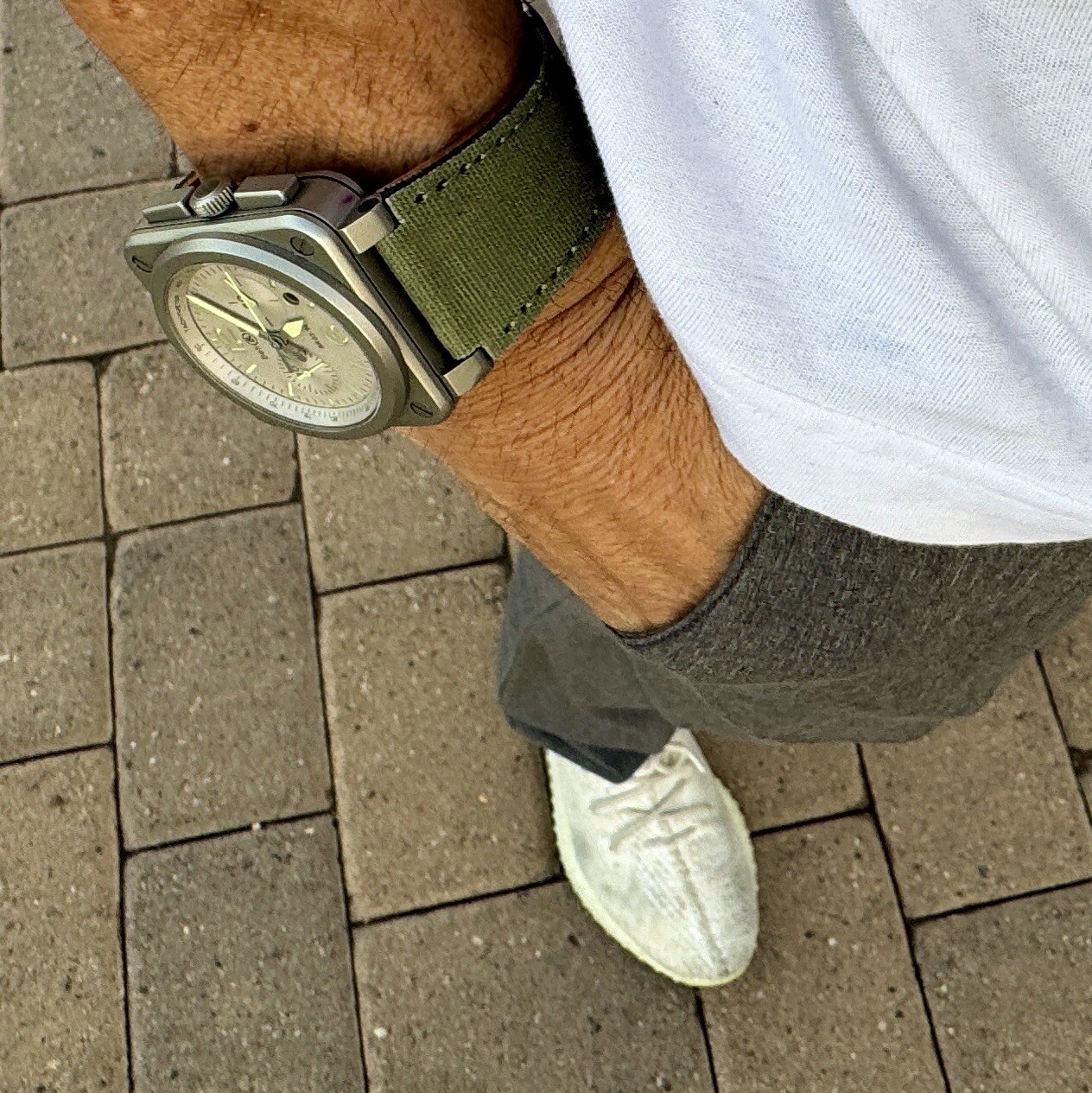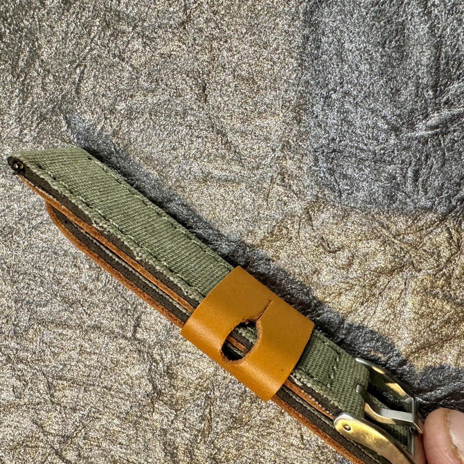 24mm Green Canvas/Leather watch Strap Bell Ross Br01 Br03 Green Stitch