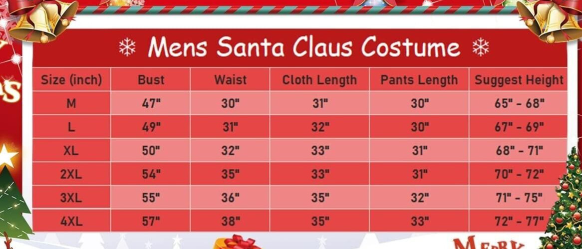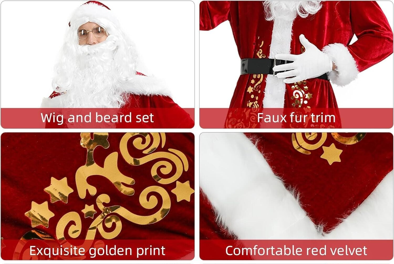 Santa Costume 11pcs Set Red Deluxe Velvet Christmas Party Cosplay Santa Claus 4X