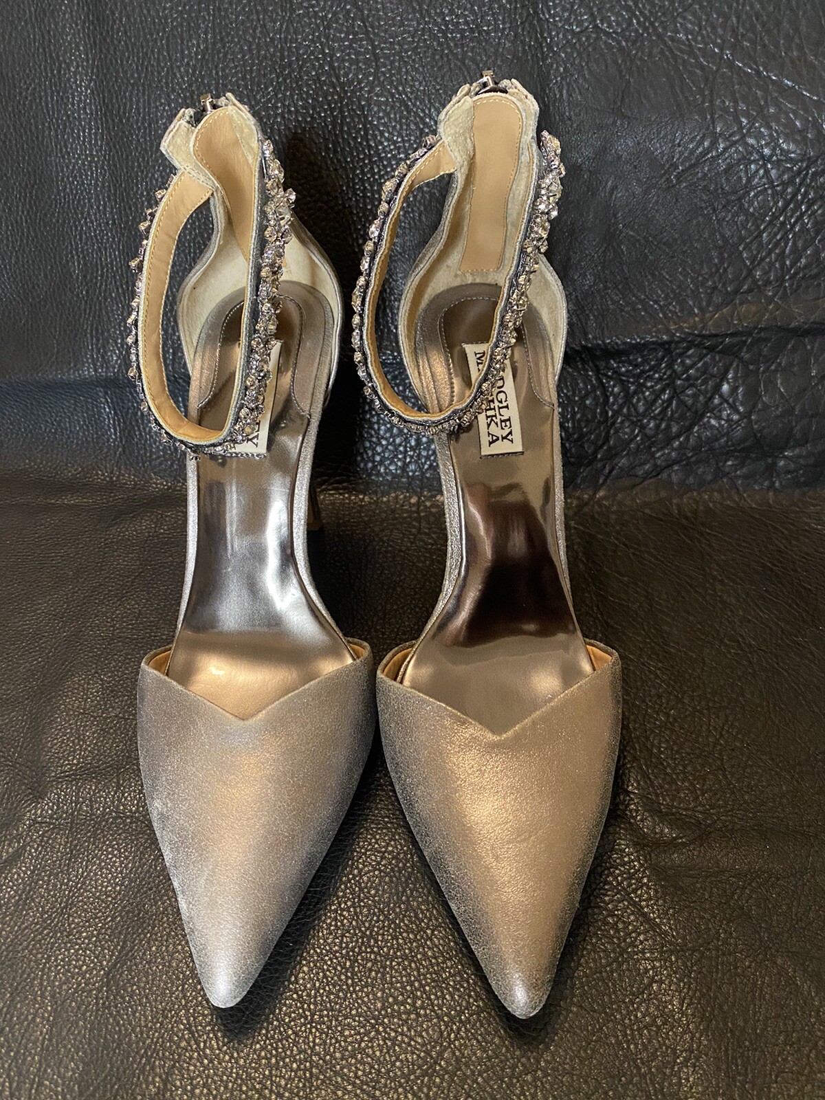 как выглядит JEWEL BADGLEY MISCHKA Evening Pump US Size 9-M Deep Gray Zipper I crystal Decor фото