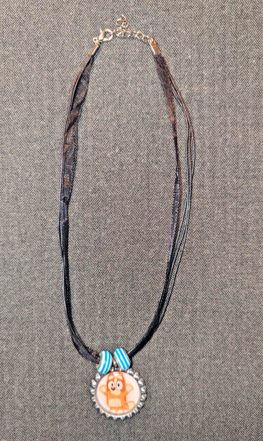 как выглядит Black Ribbon Bottle Cap Bling Charm Striped Beads Necklace Bingo Bluey Puppy Dog фото