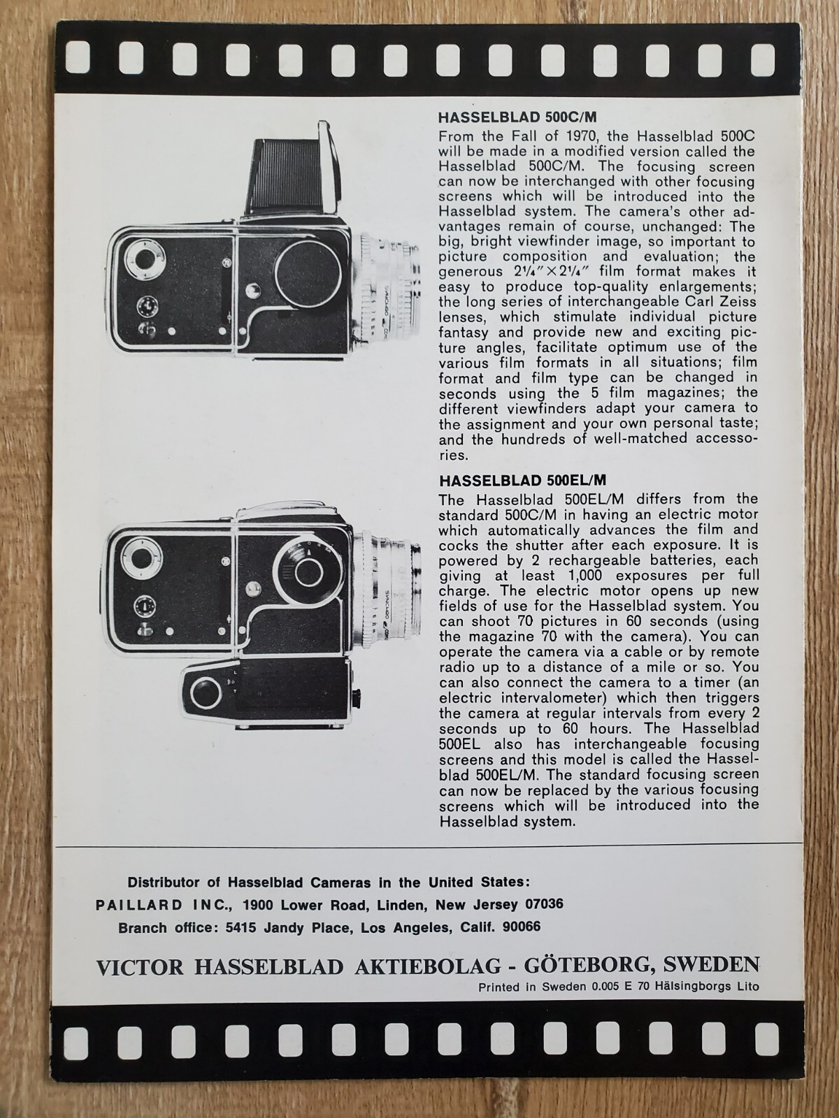 HASSELBLAD Magazine 70 Vintage 1970 Camera Fold-Out Brochure Sweden English