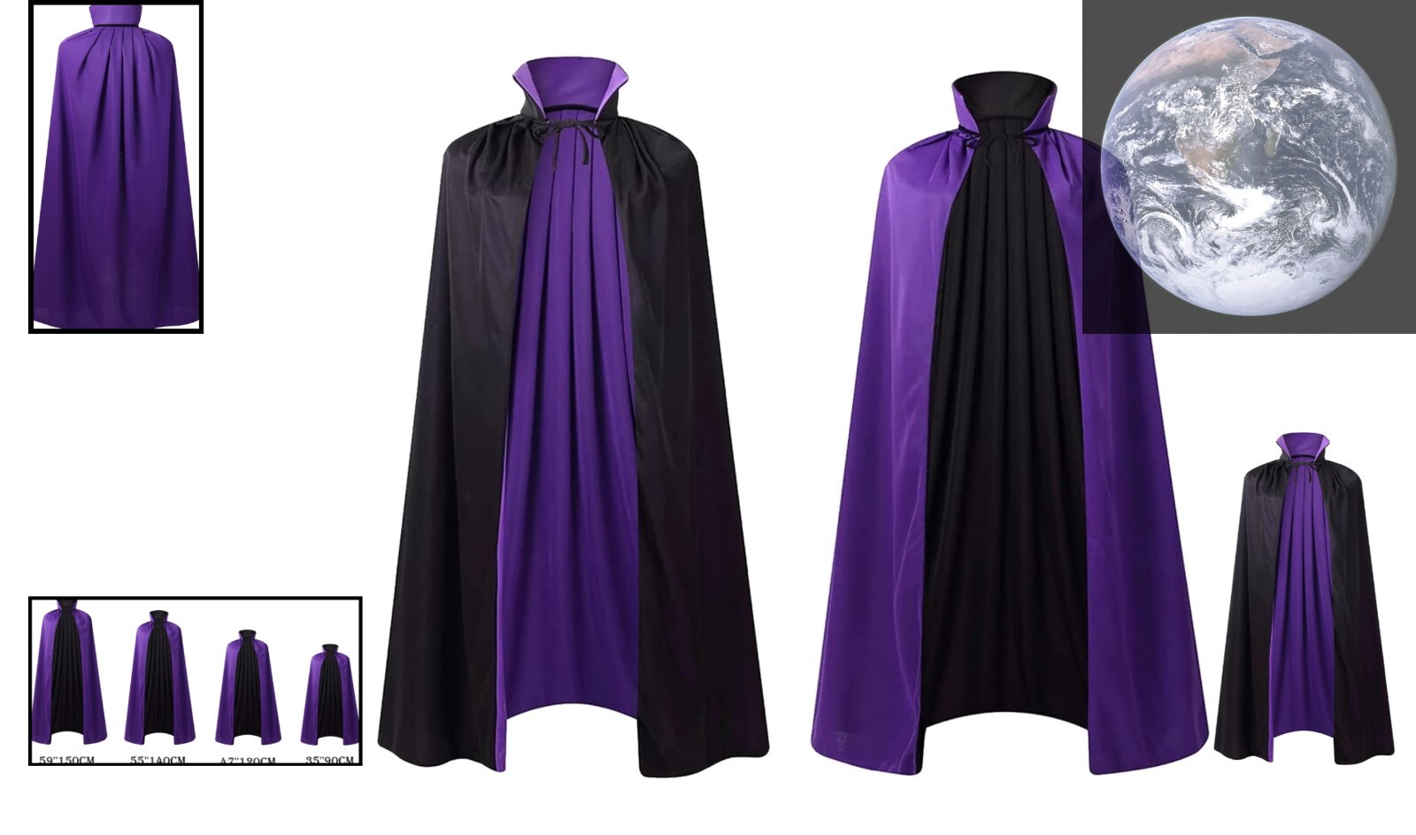 Black Purple Reversible Cloak - Perfect for Halloween Photos Costume Parties
