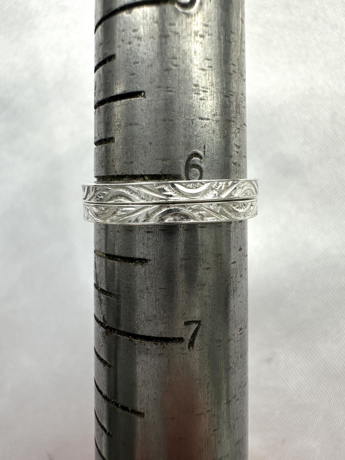 как выглядит Pair Of 2 Sterling Silver Patterned Eternity Bands Size 6 Artisan Crafted New фото