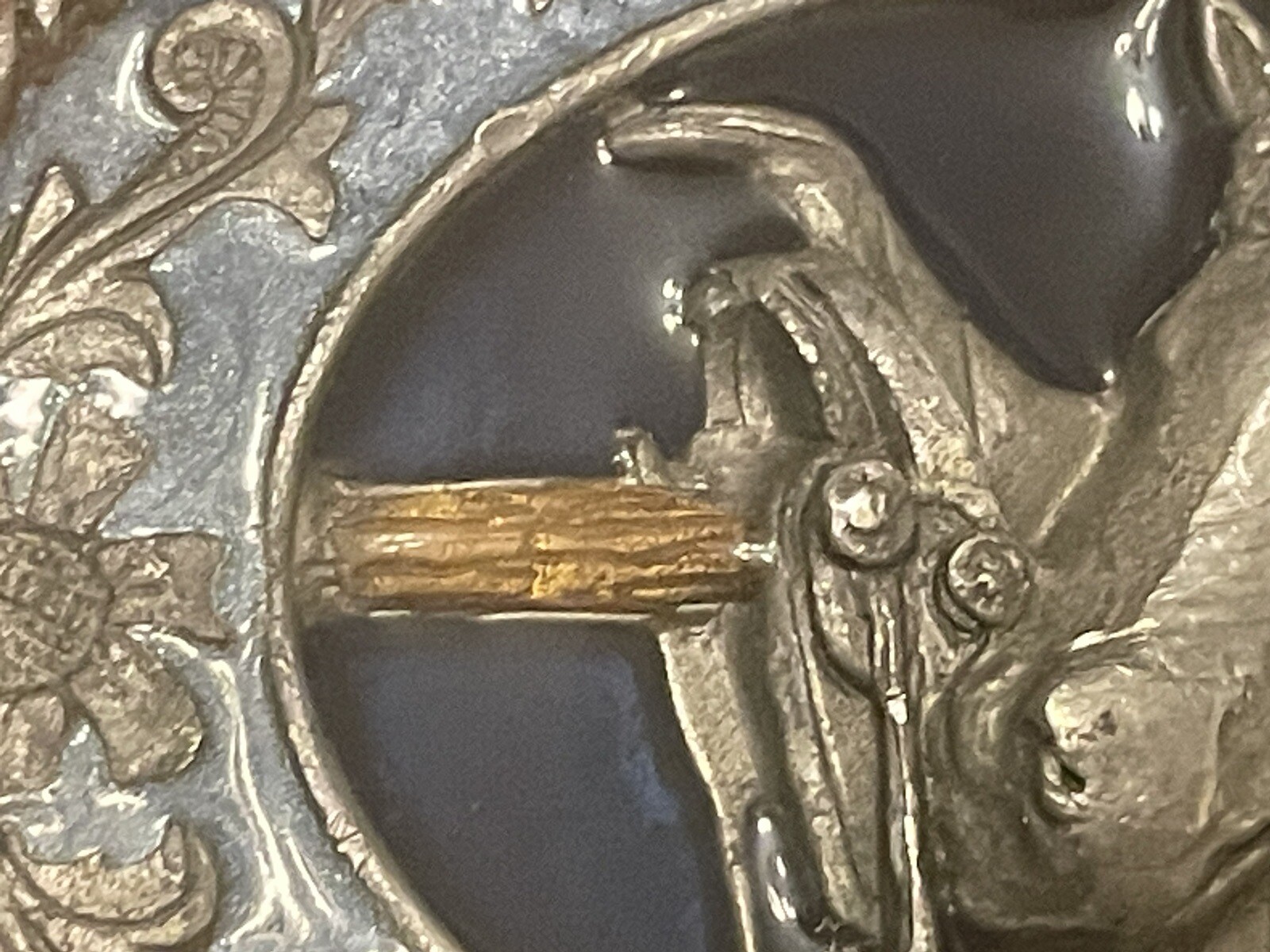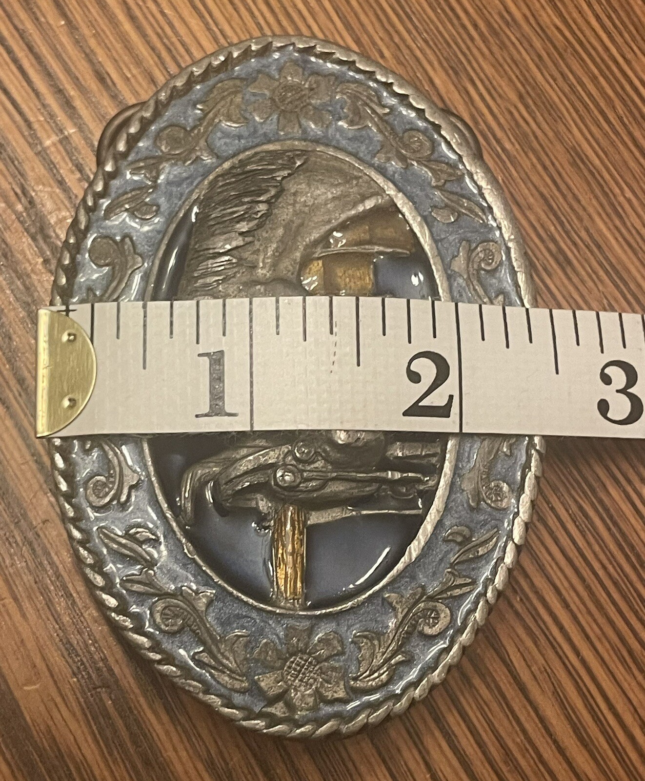 как выглядит Vintage 1985 SISKIYOU PEWTER Enamel BELT BUCKLE Western Horse Saddle фото