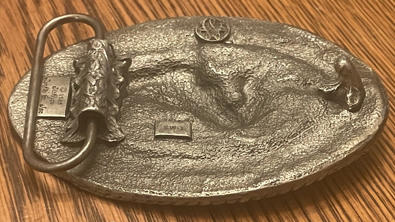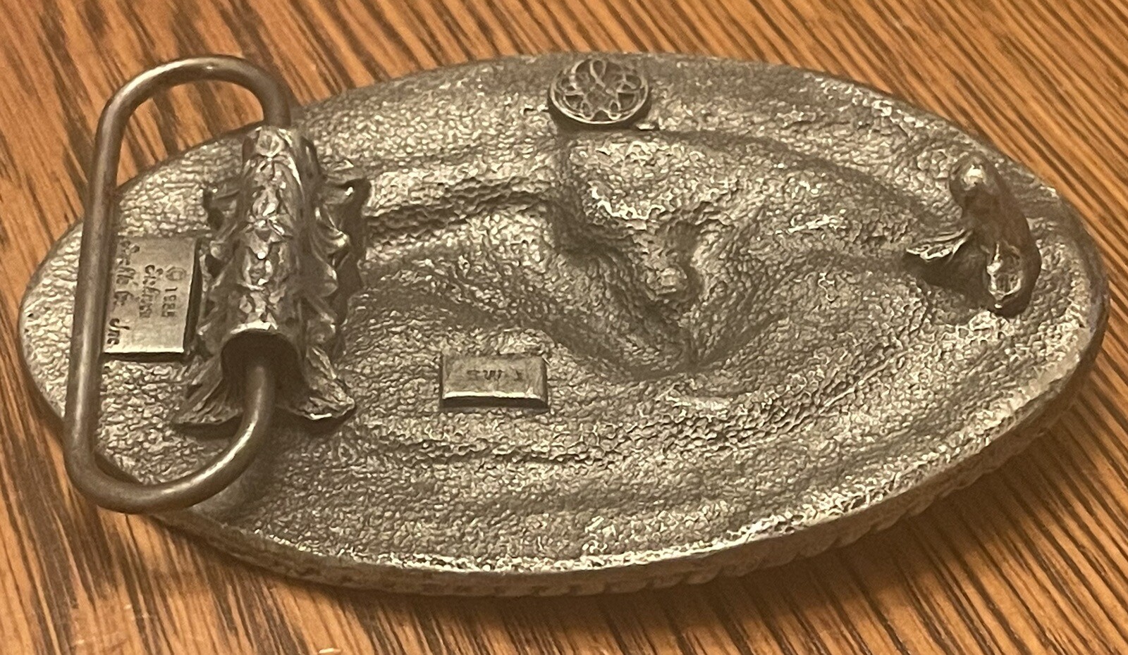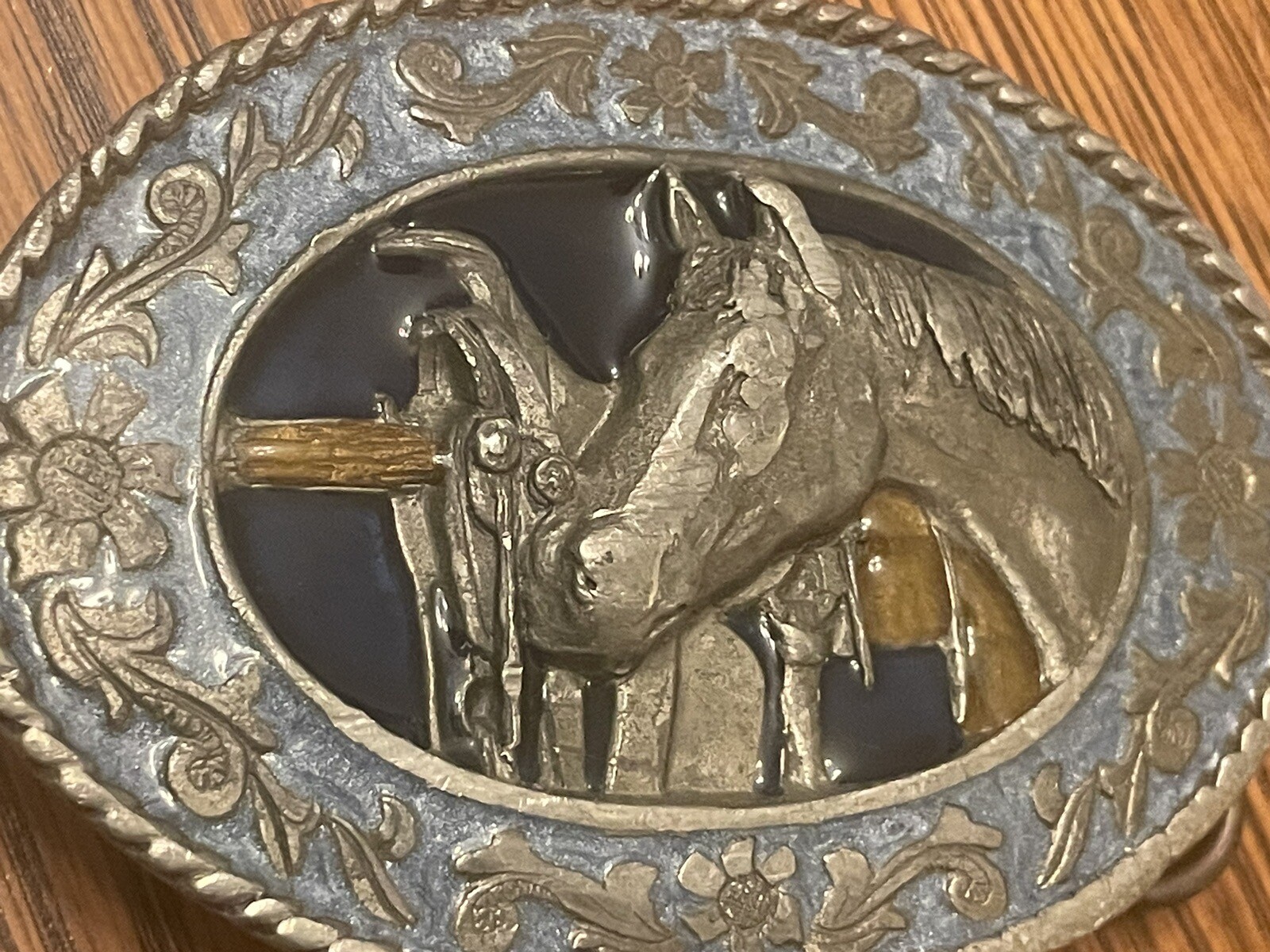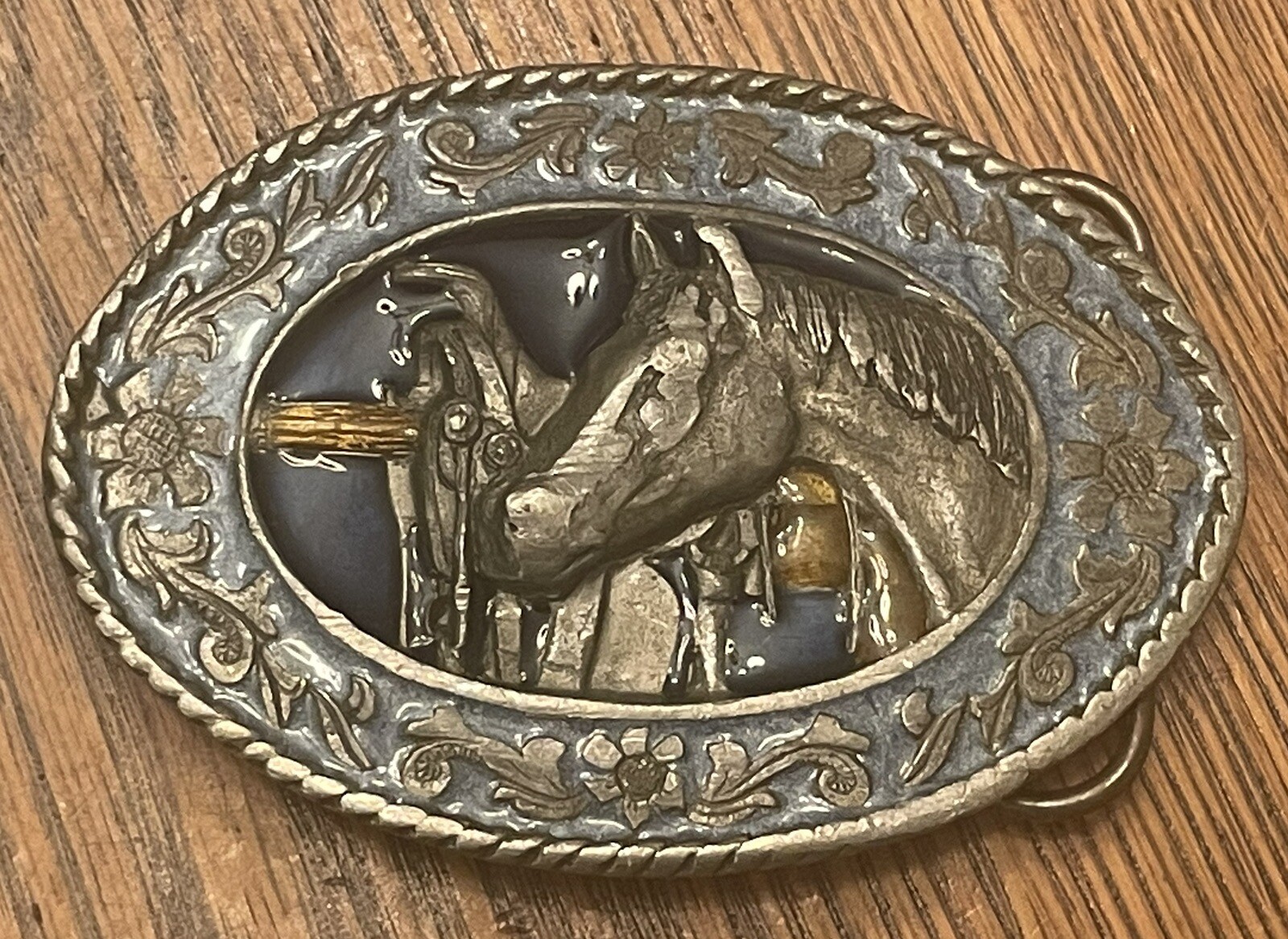 Vintage 1985 SISKIYOU PEWTER Enamel BELT BUCKLE Western Horse Saddle