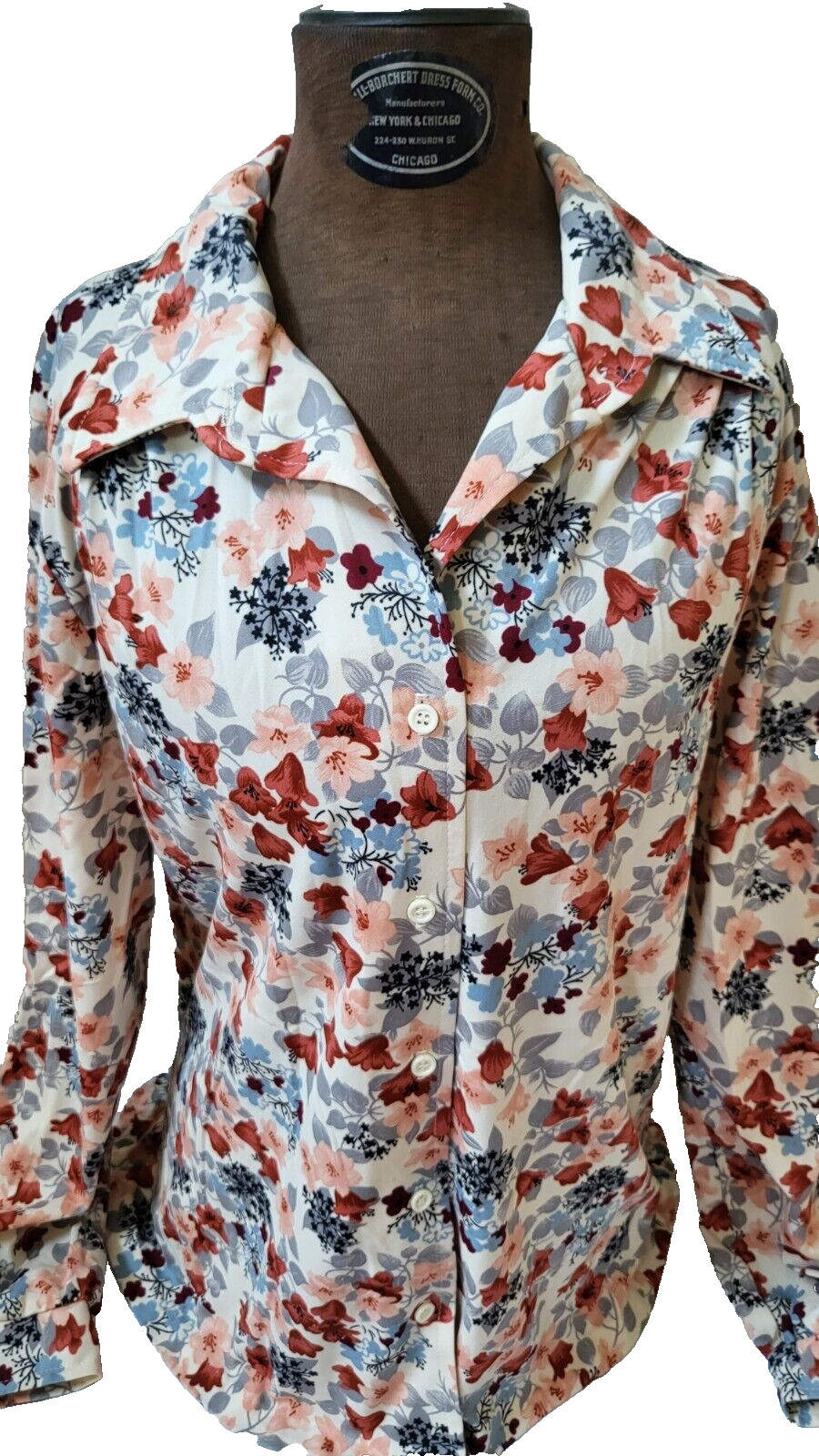как выглядит Vtg 70s Retro Op Art Autumn Floral Print Poly Knit Casual Button Shirt L-XL фото