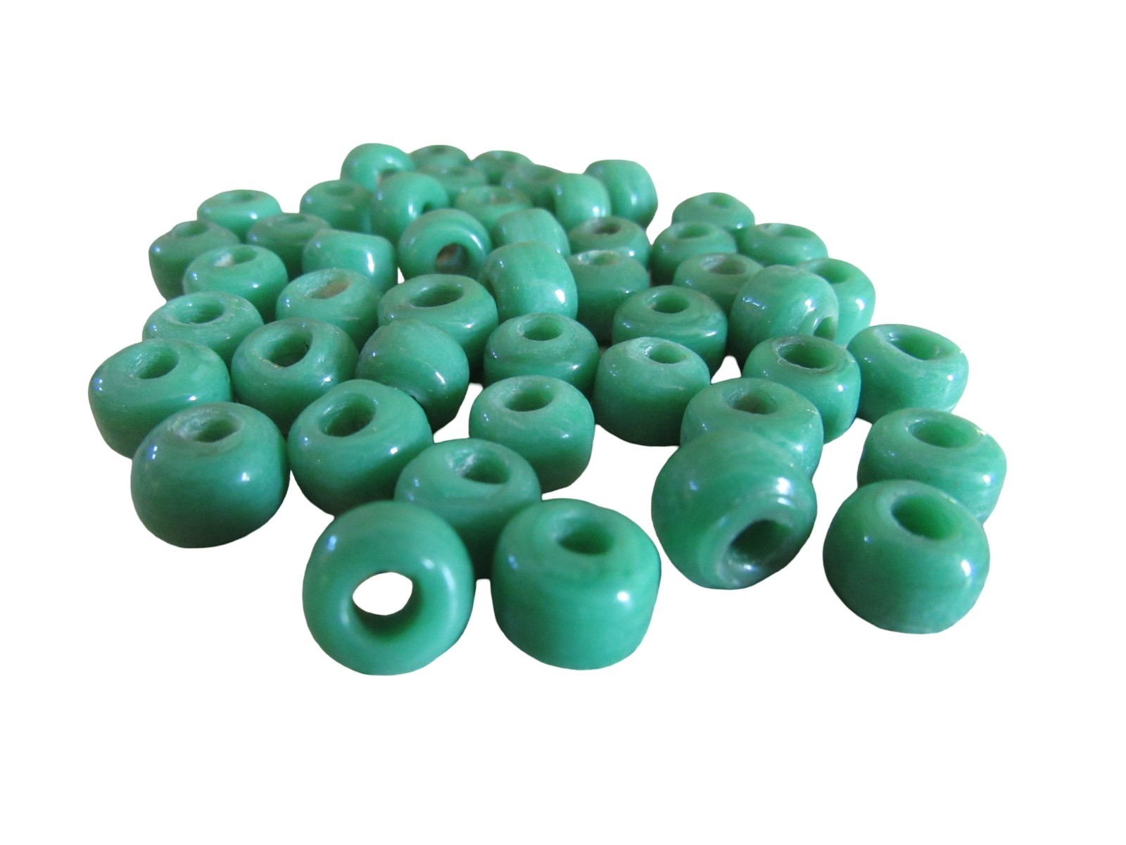 Green Opaque Glass Crow Pony Beads Jewelry Craft Bead Necklace 100 pcs 9 x 6MM