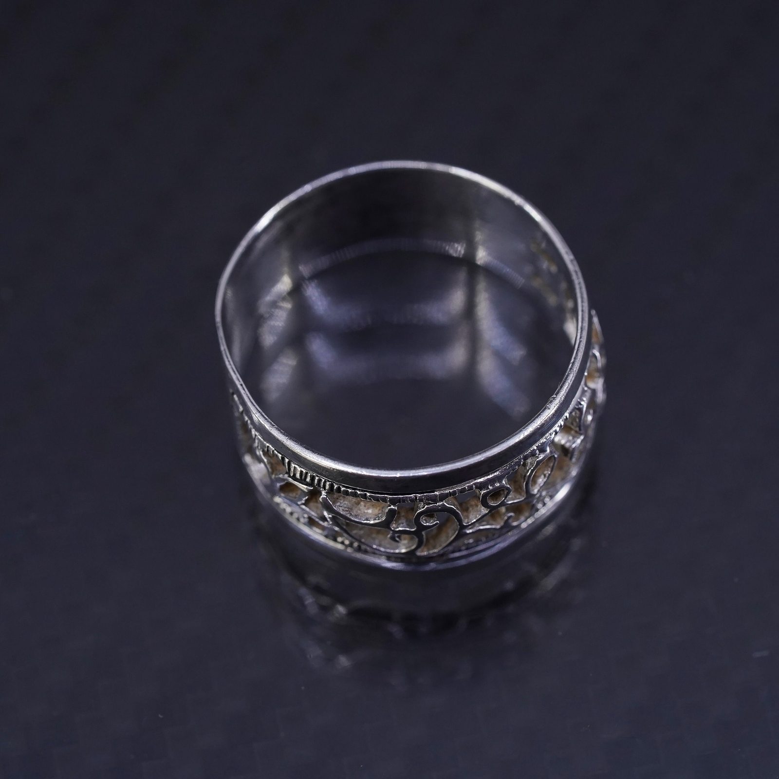 как выглядит size 7, vintage Sterling silver handmade ring, 925 filigree wavy band фото
