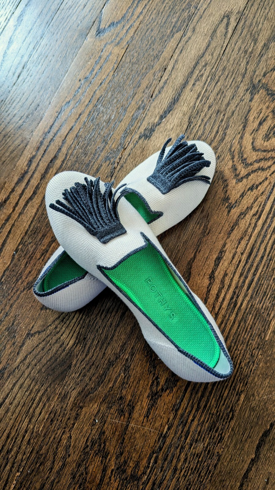 как выглядит Rothy s Wool Merino Tassel Loafer Size 6 Limited Edition White Grey Retired NEW фото