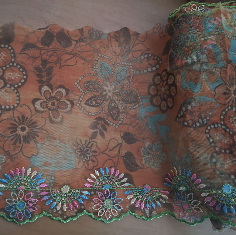 3.5 Yard 8 Wide Brown Print Flower Tulle Lace/Embroidered Colorful Flower xh164