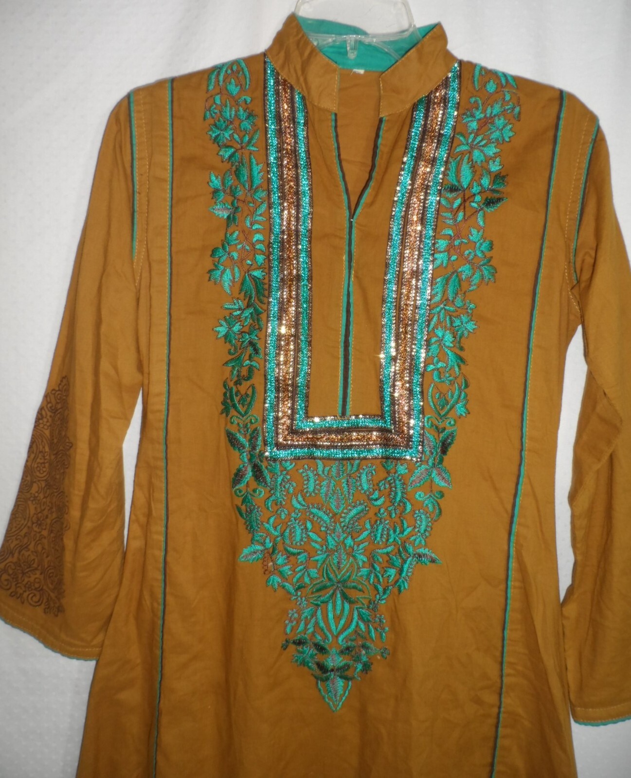 Beautiful Eid Embroidered Cotton Anarkali Long Kameez Kurti Kurta Dress Size M