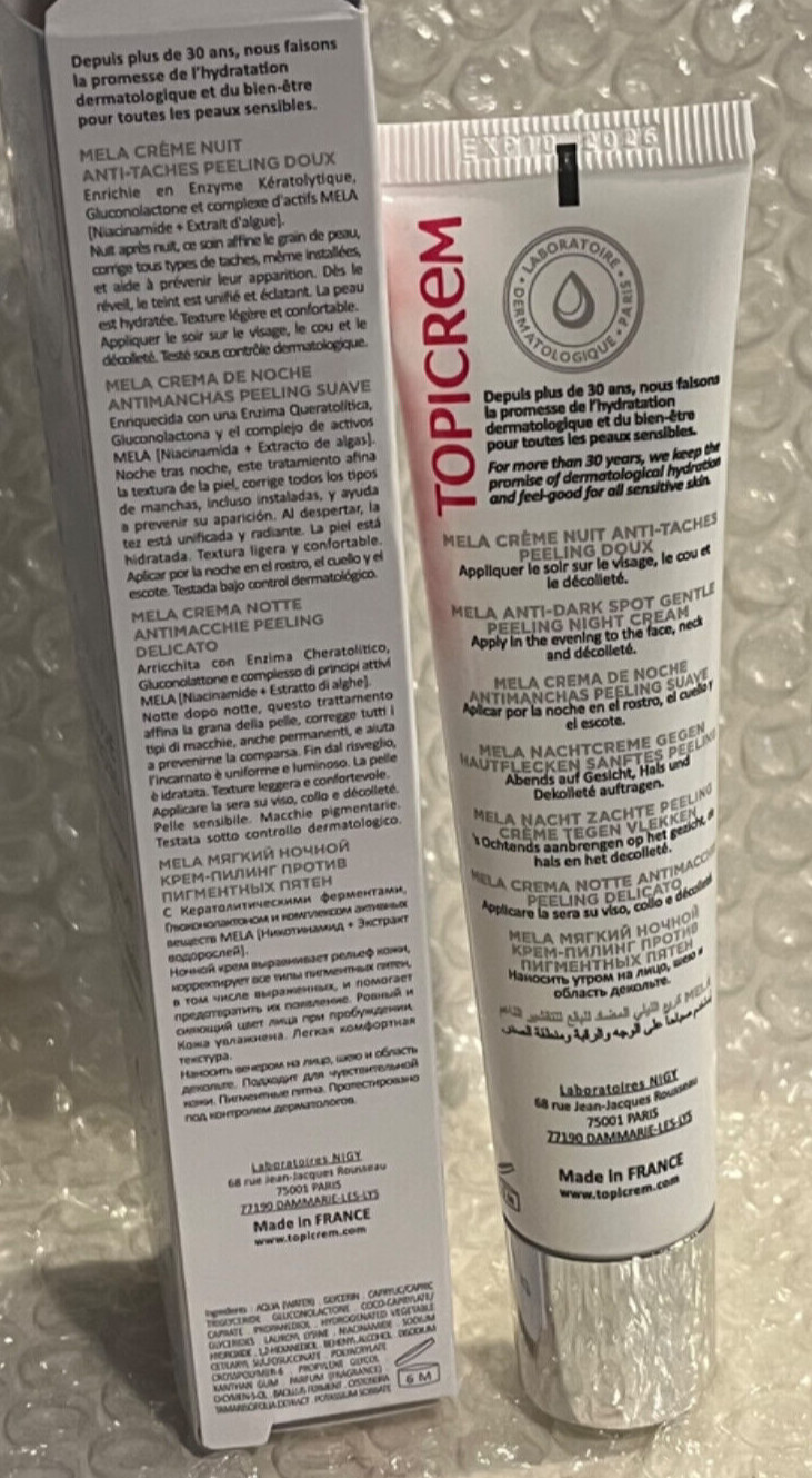 Topicrem MELA Anti-Dark Spot Gentle Peeling Night Cream 40ml/1.35oz Exp 10/2026
