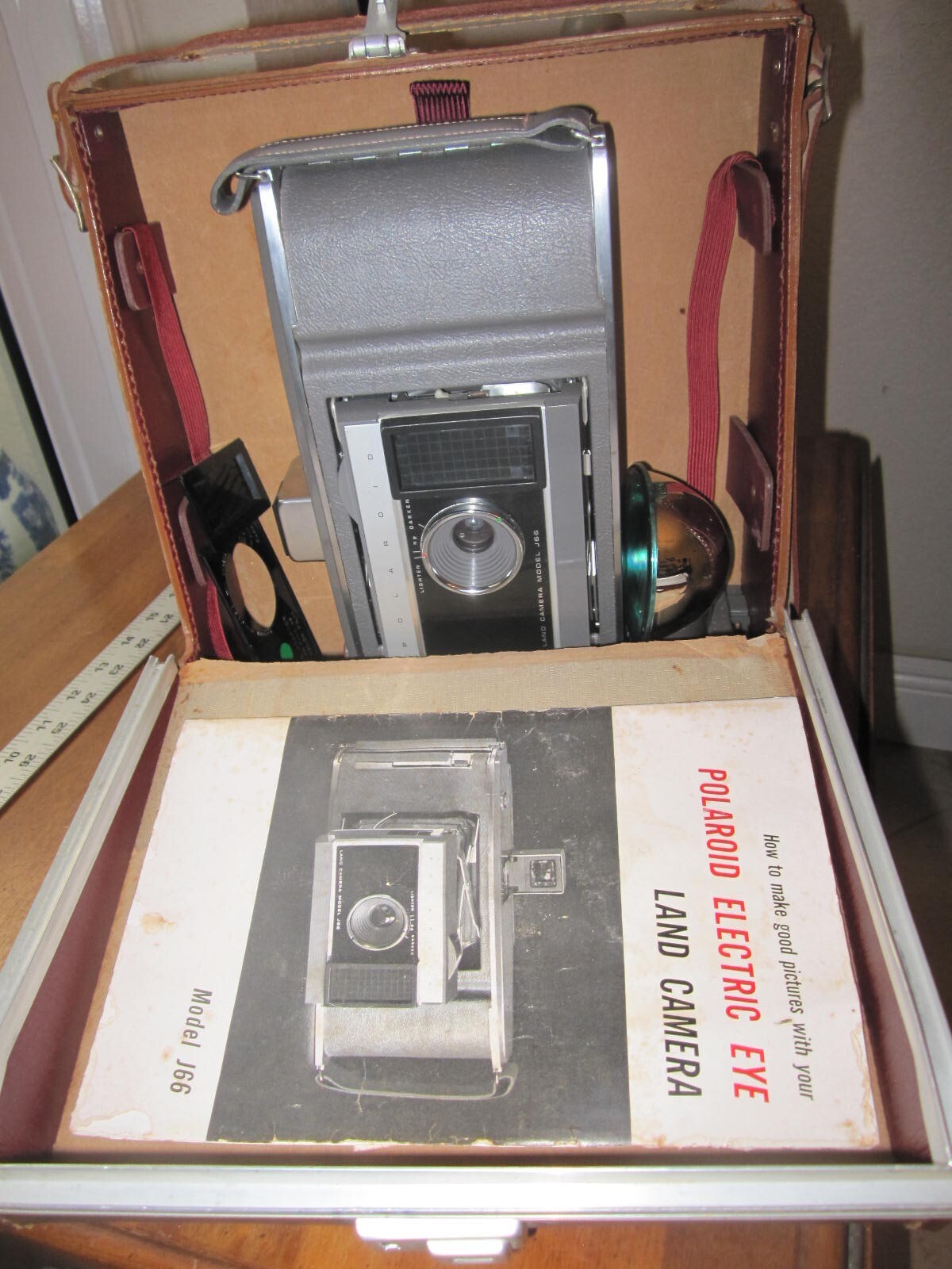 как выглядит Vintage Polaroid Electric Eye J66 Land Camera w/carry case manual фото