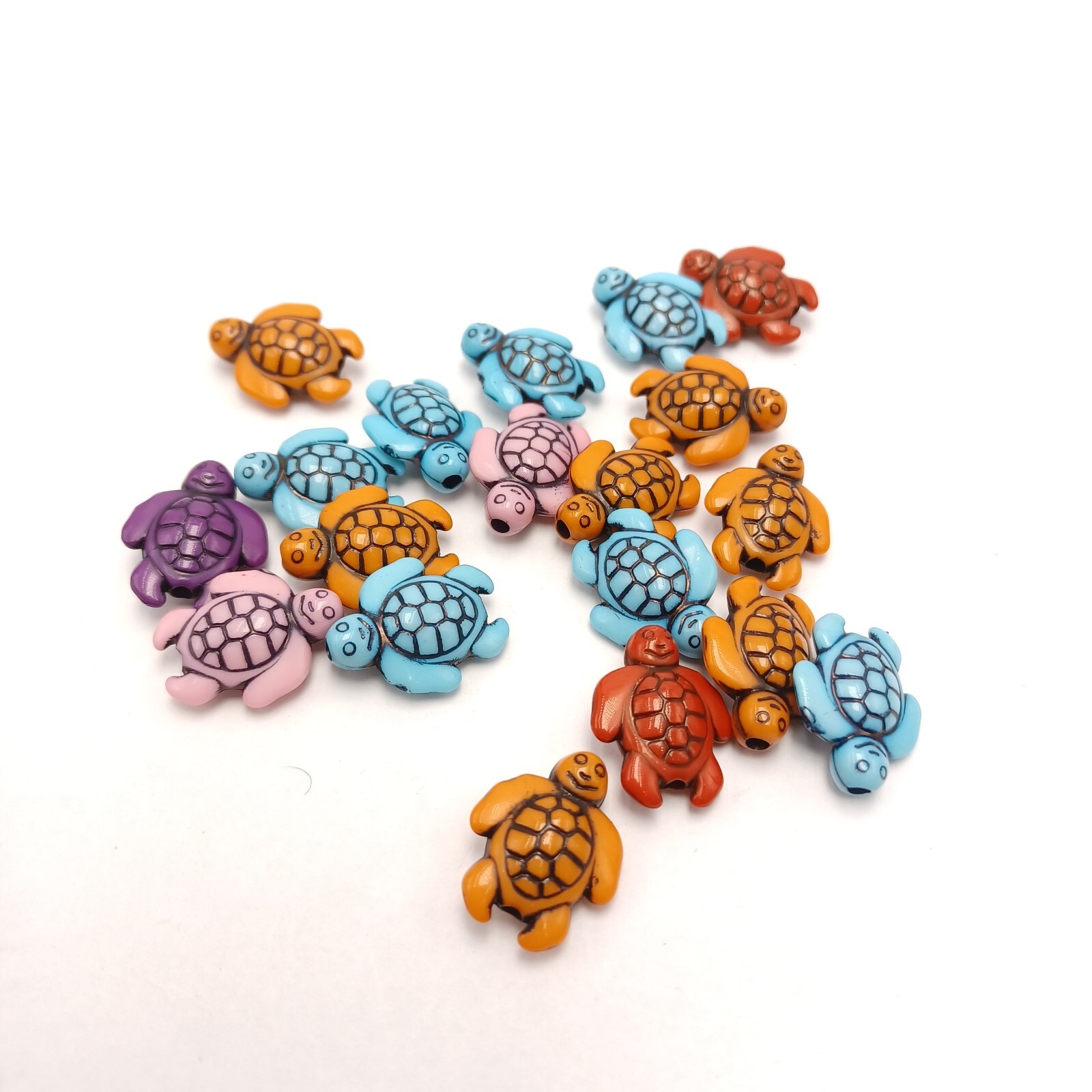 Acrylic Turtle Spacer Beads 18mm with 1.8mm hole. Lot of 100 Multicolor. PO