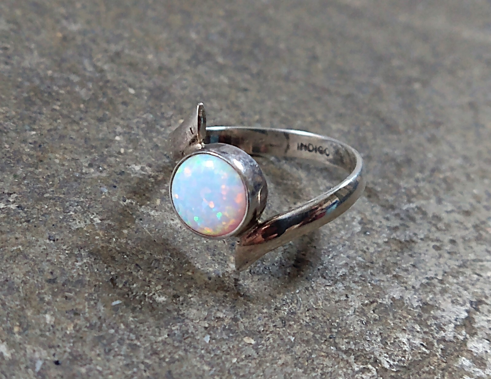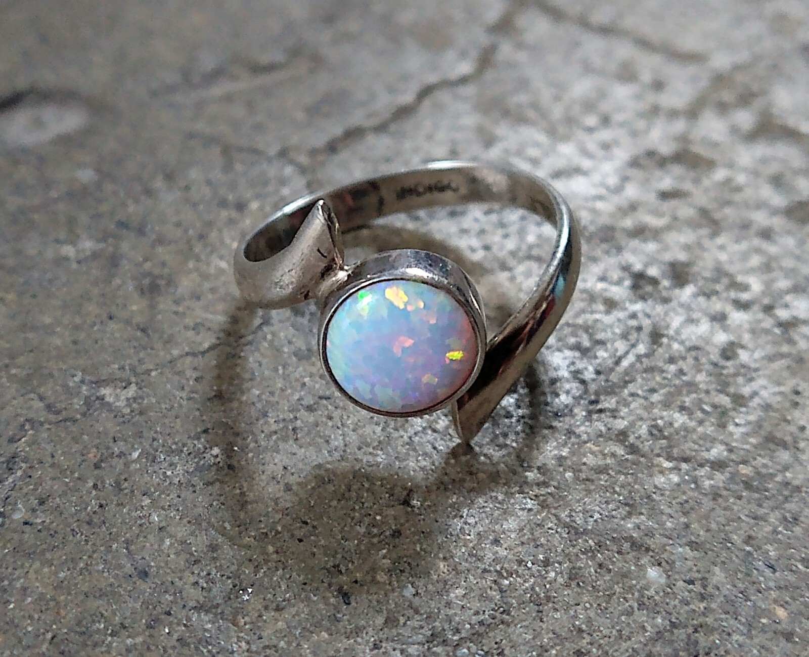 Sterling Silver Ring Faux Fire Opal Size 7.5 Bypass Round Modern 2.4g .925
