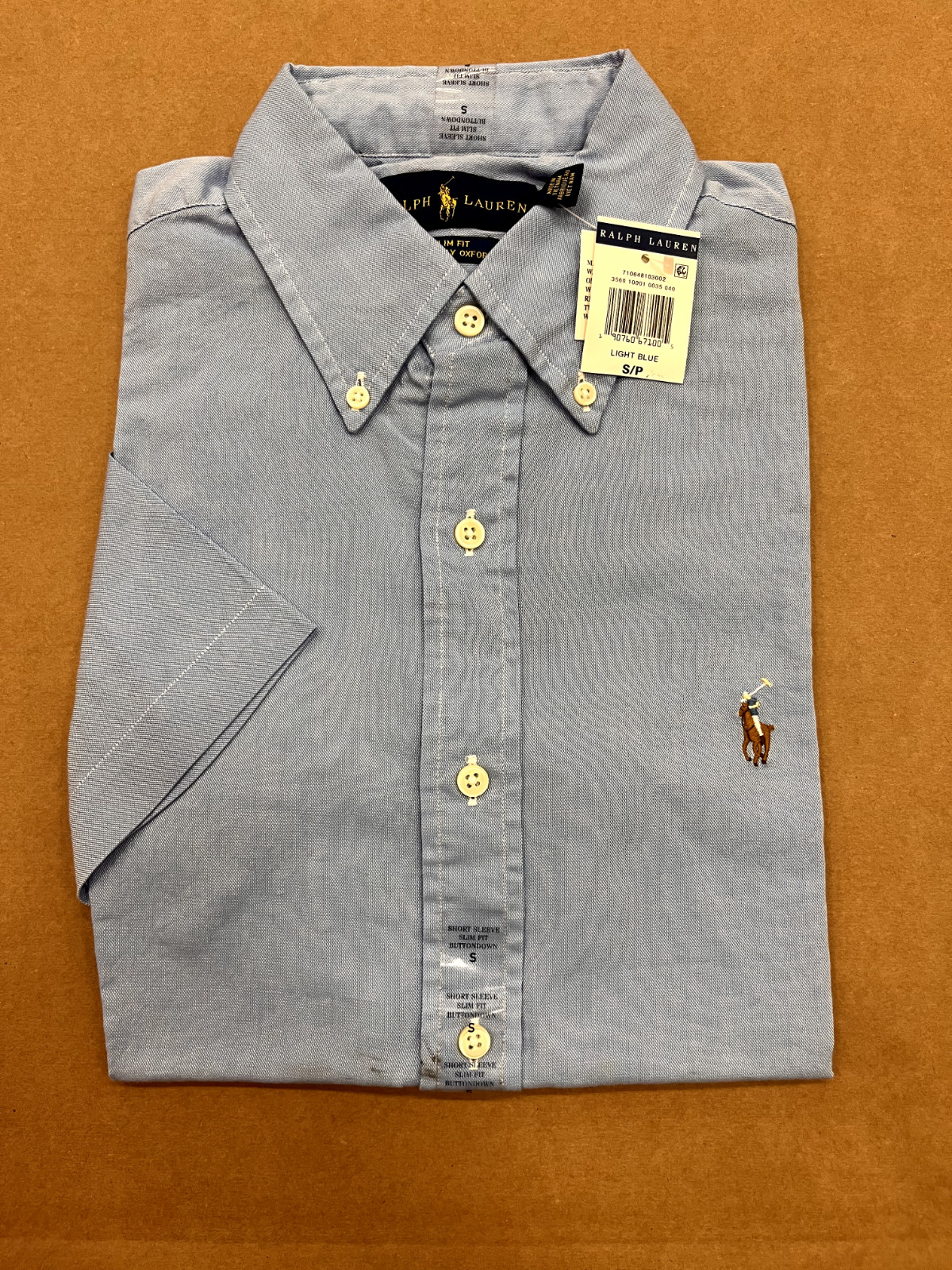 как выглядит MINOR DEFECT Polo Ralph Lauren Short Sleeve Chambray Blue Oxford Shirt - Small фото