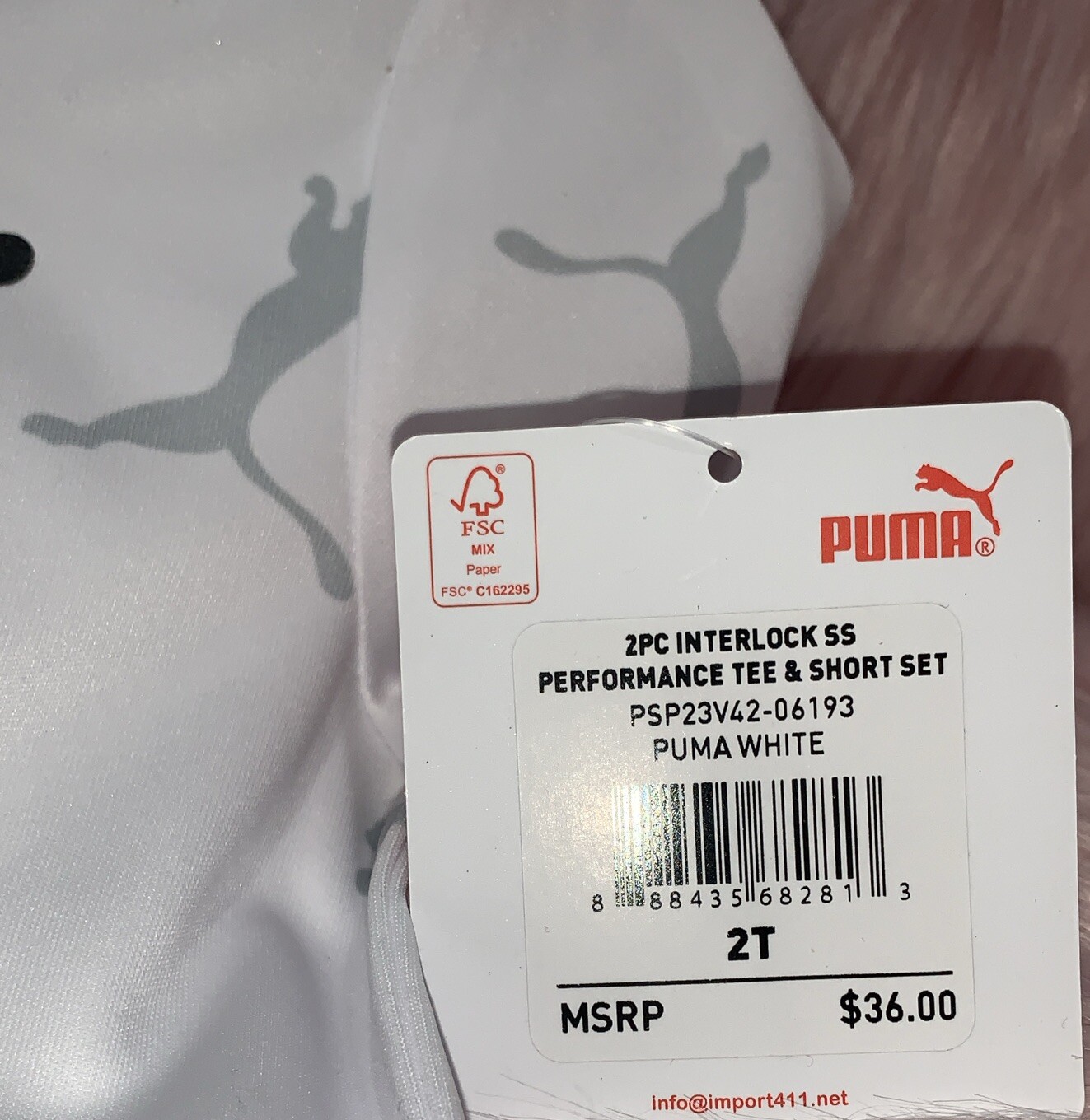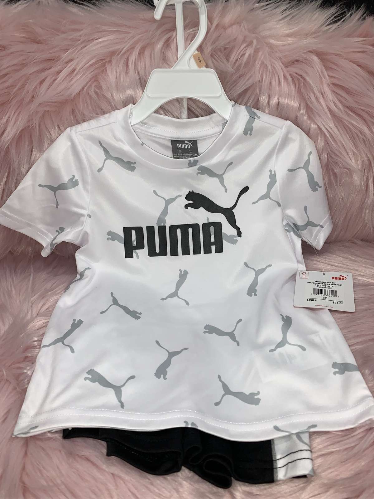 Puma Little Boy s 2pc All Over Logo Tee And Short Set Black White Size 2T NWT