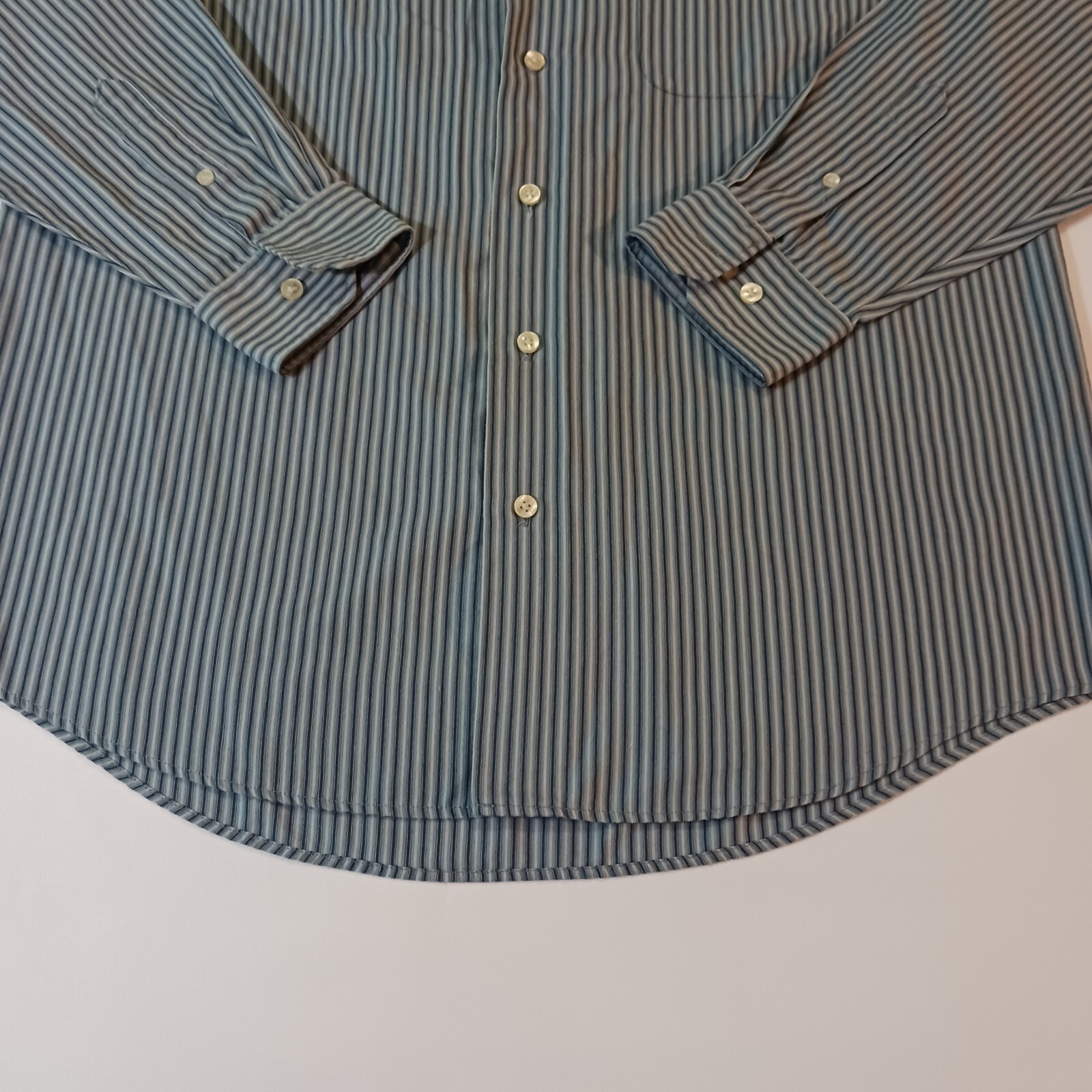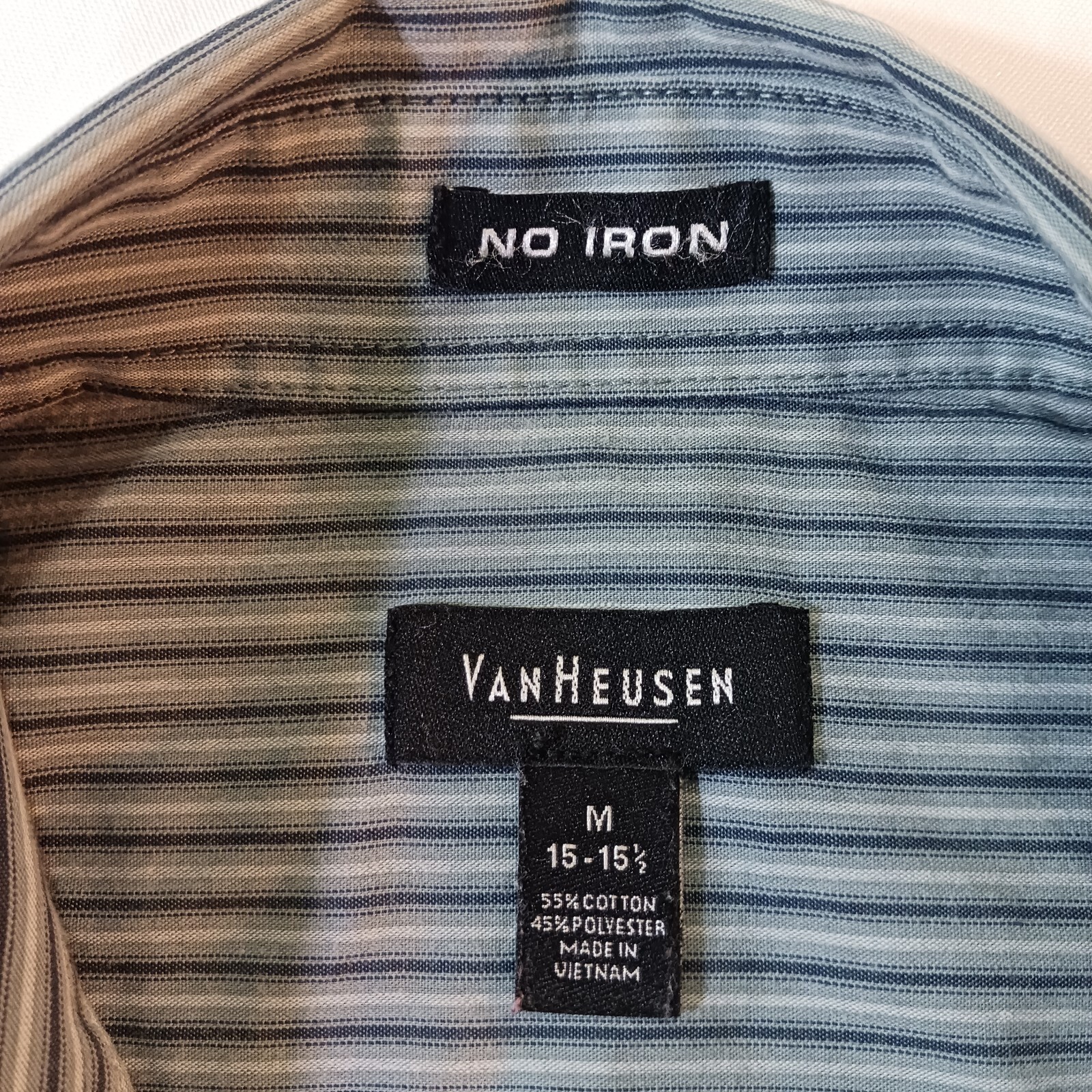 как выглядит Van Heusen Long Sleeve Mens Gray White Striped Button Up Shirt Sz M 15-15 1/2 фото