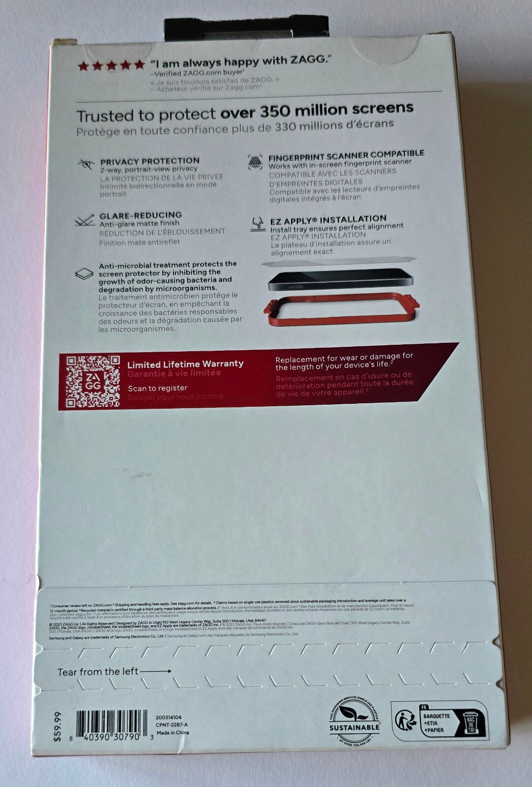 NEW ZAGG InvisibleShield Fusion PRIVACY Glass Protector Samsung Galaxy S24 Plus