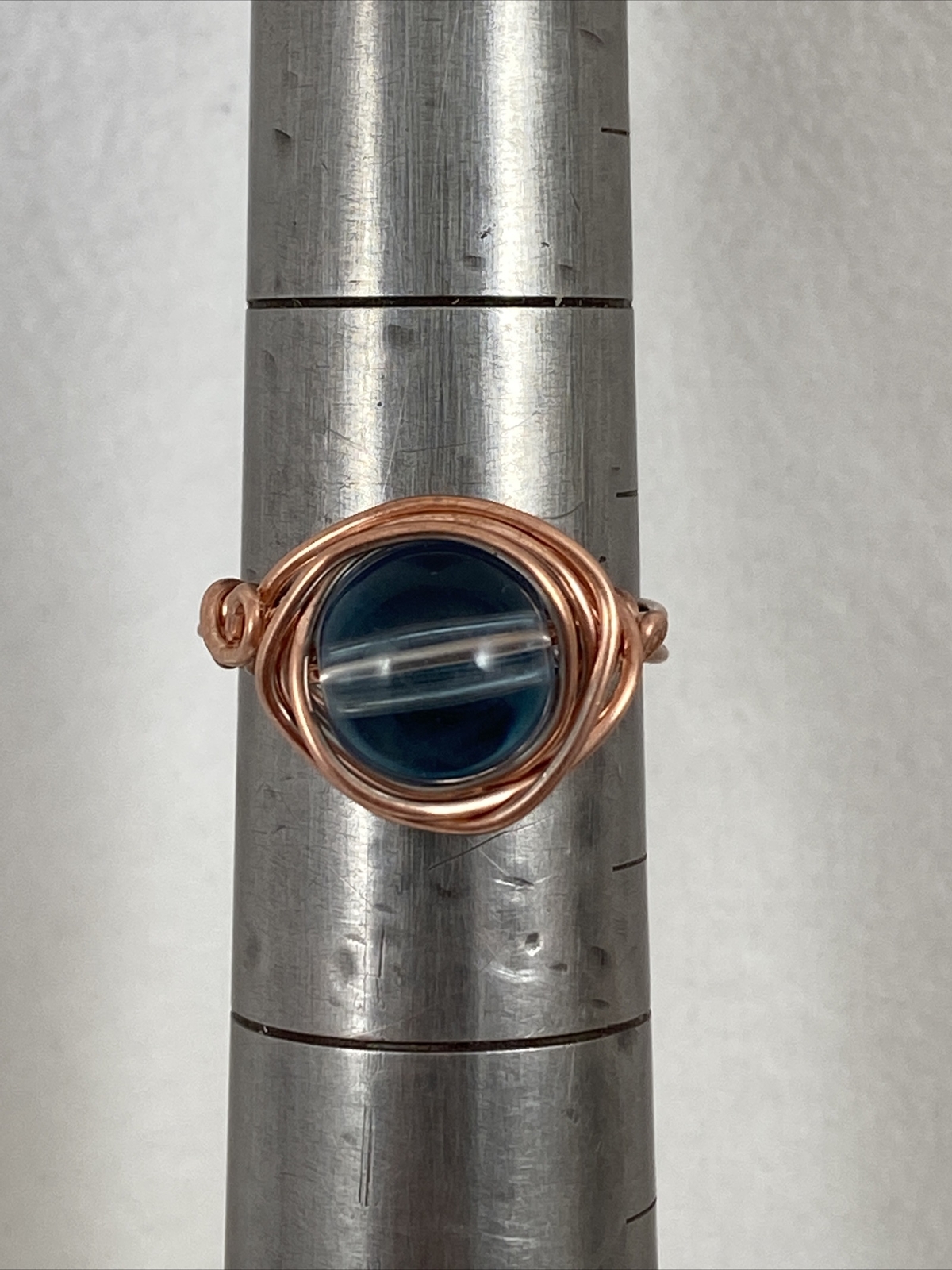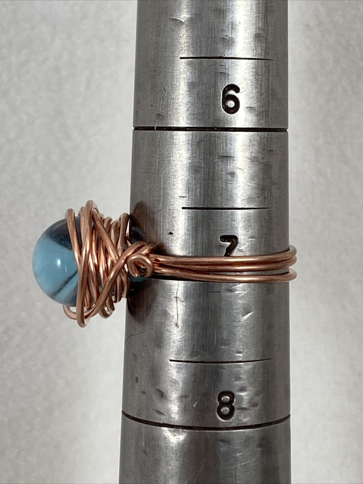 Handmade Copper Wire Wrap Glass Bead Ring Size 7 99