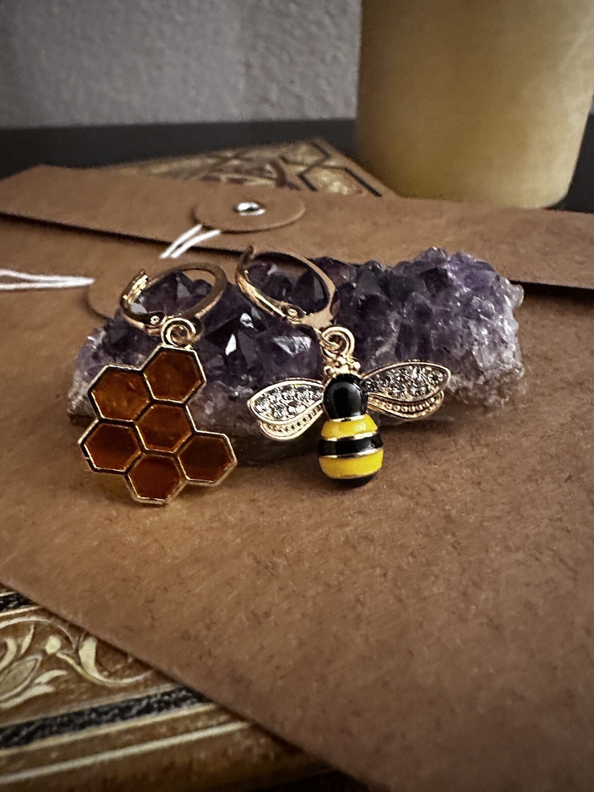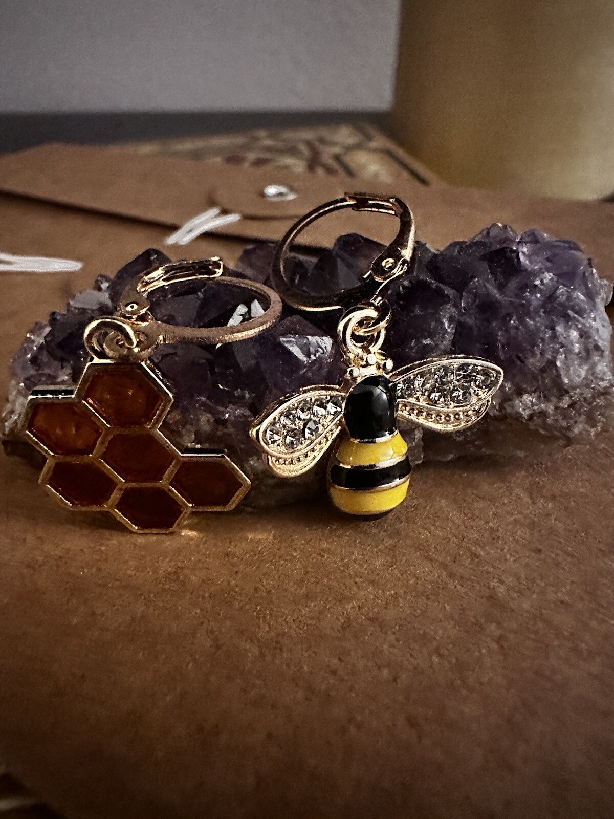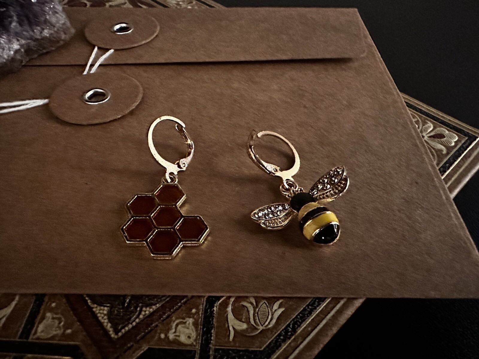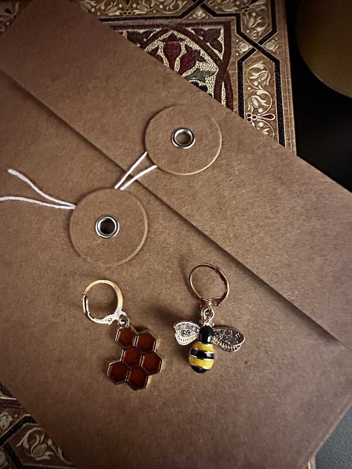 Bee Honeycomb Gold Earrings