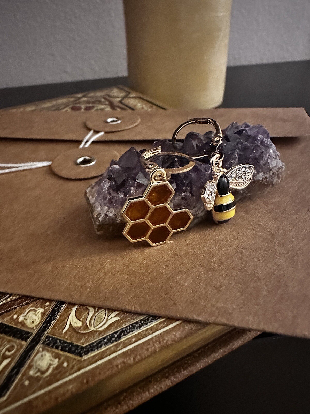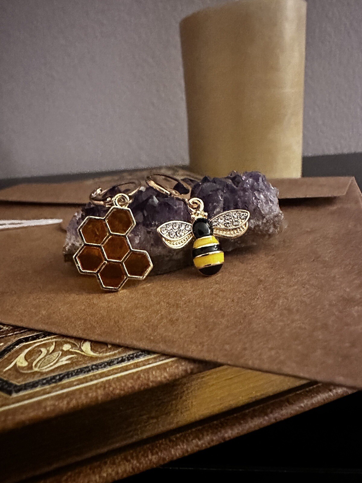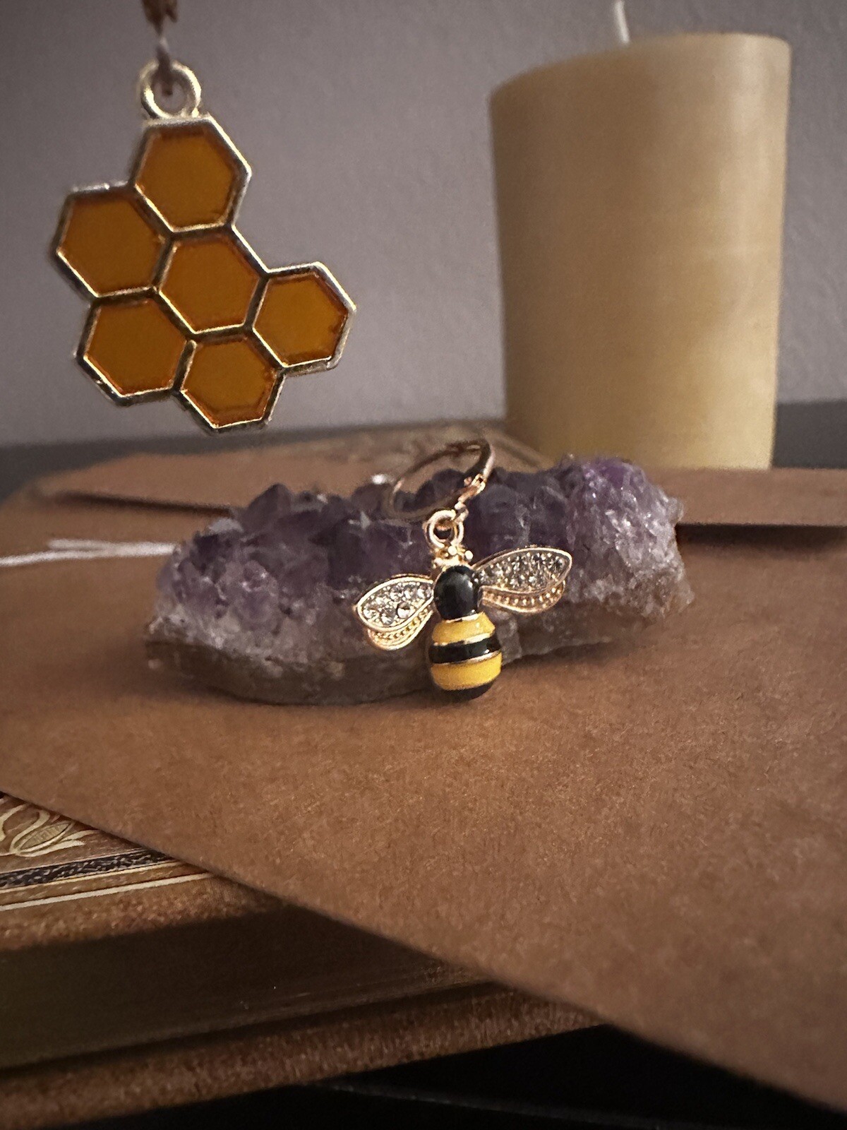 Bee Honeycomb Gold Earrings