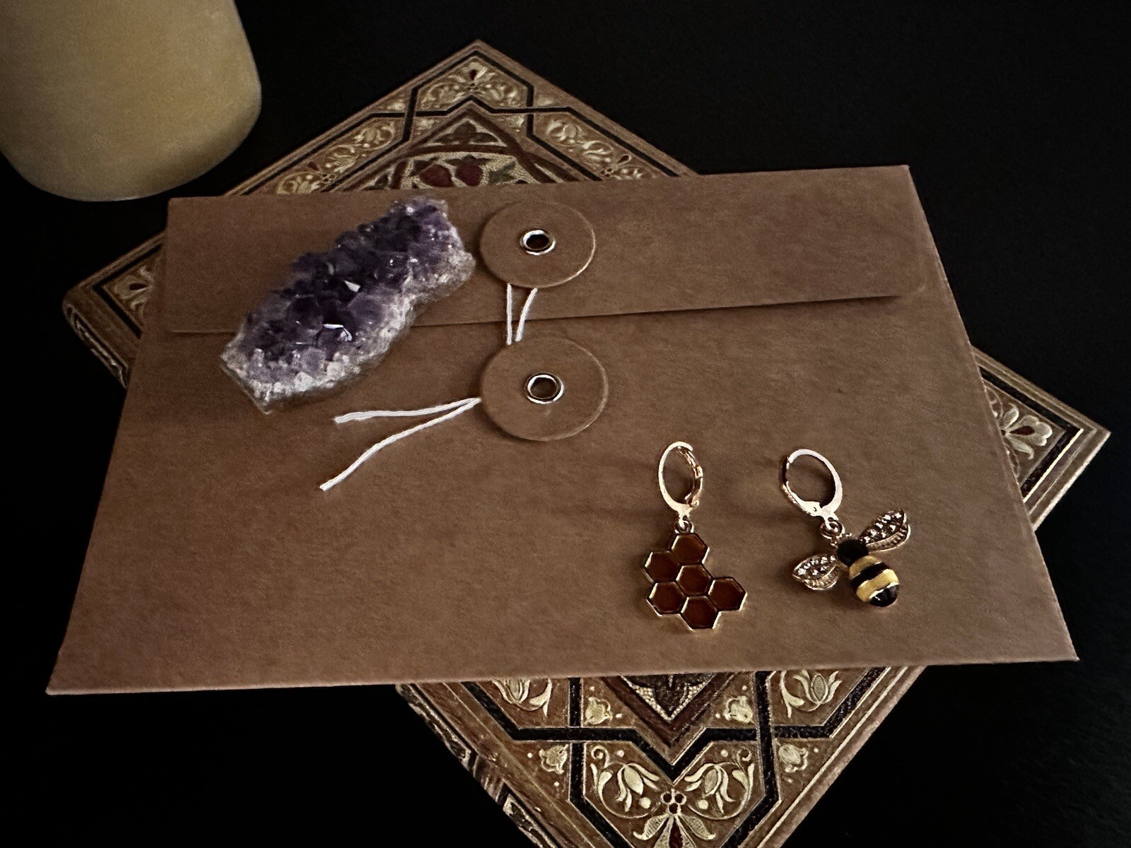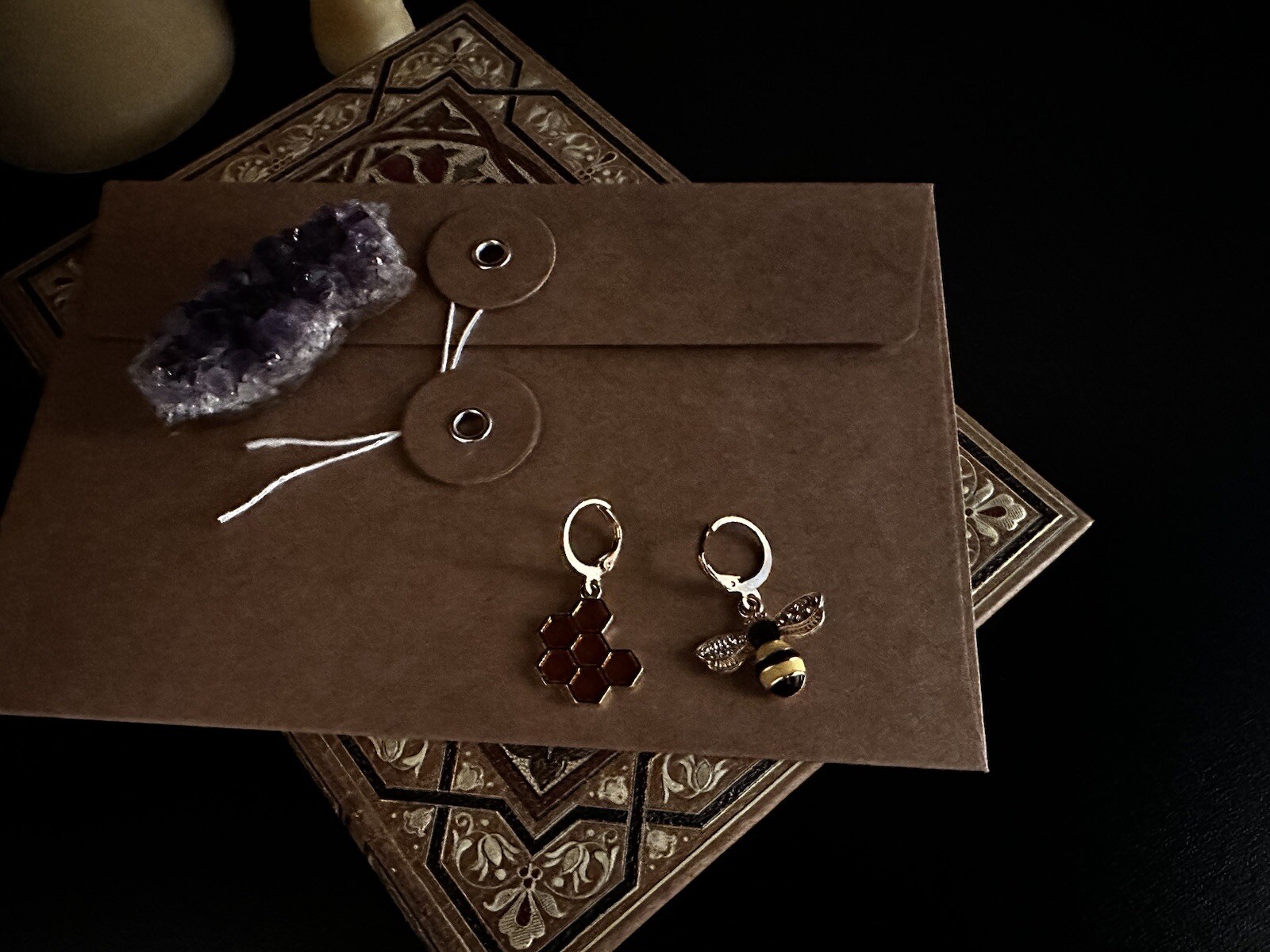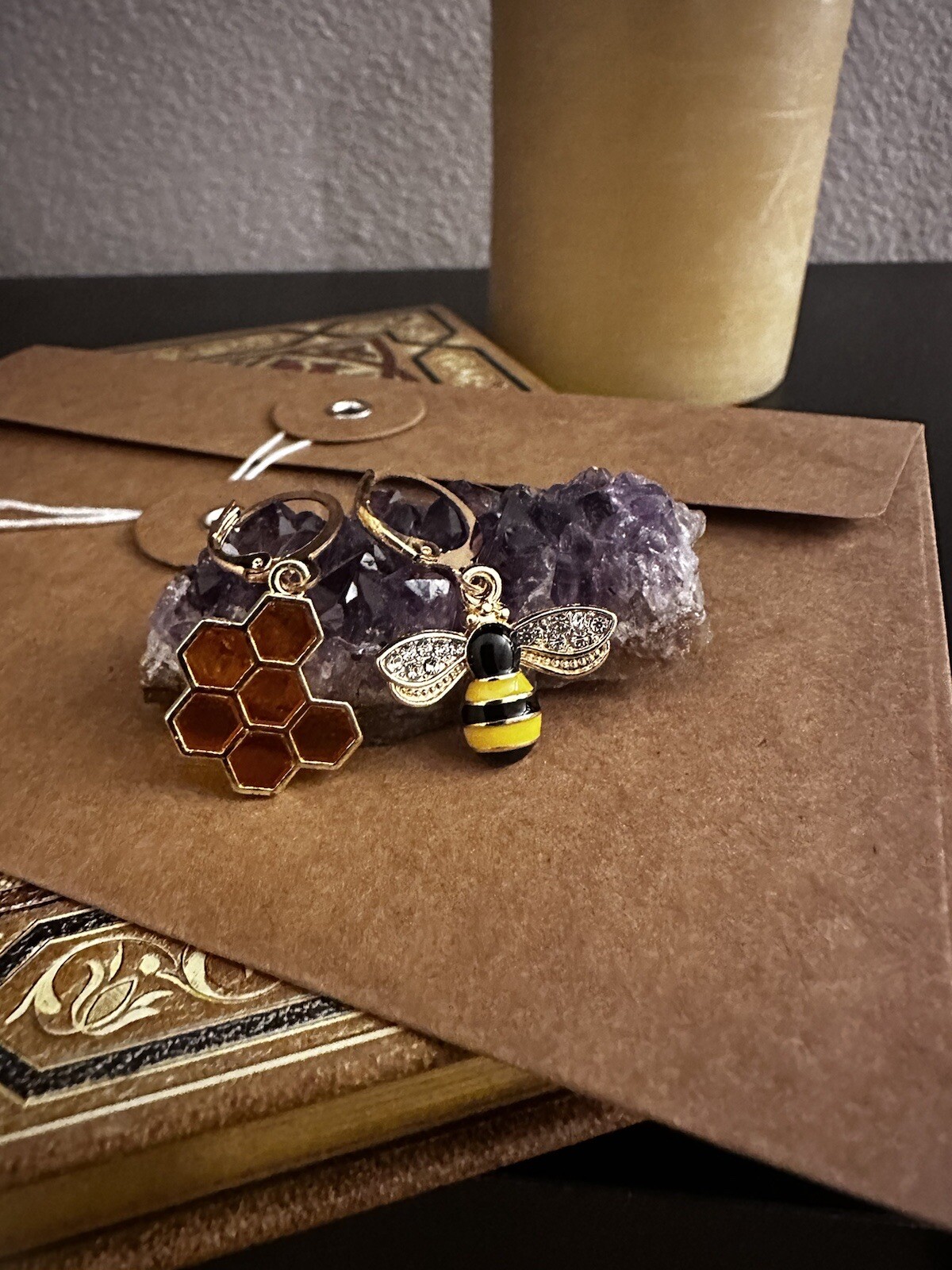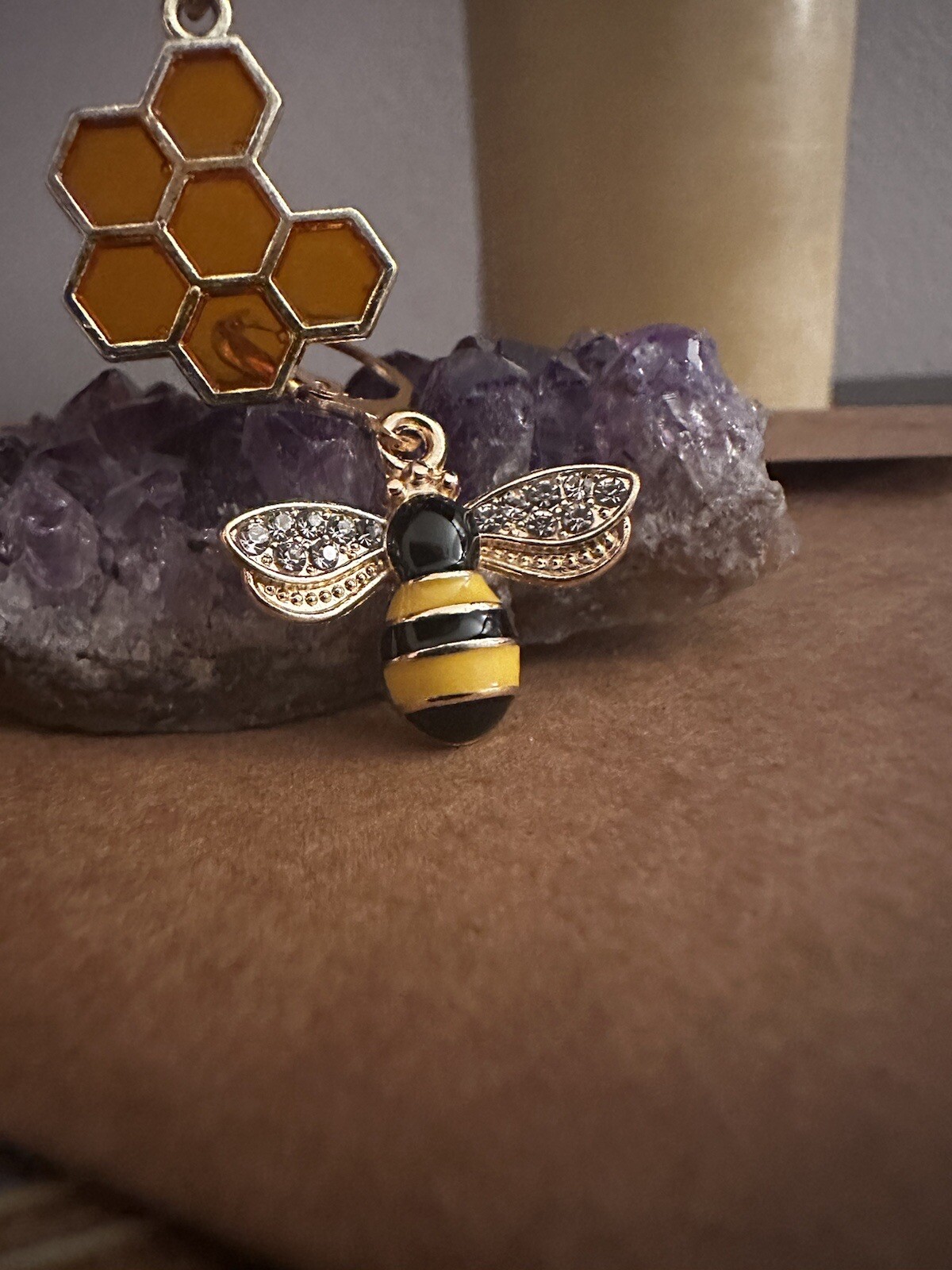 Bee Honeycomb Gold Earrings