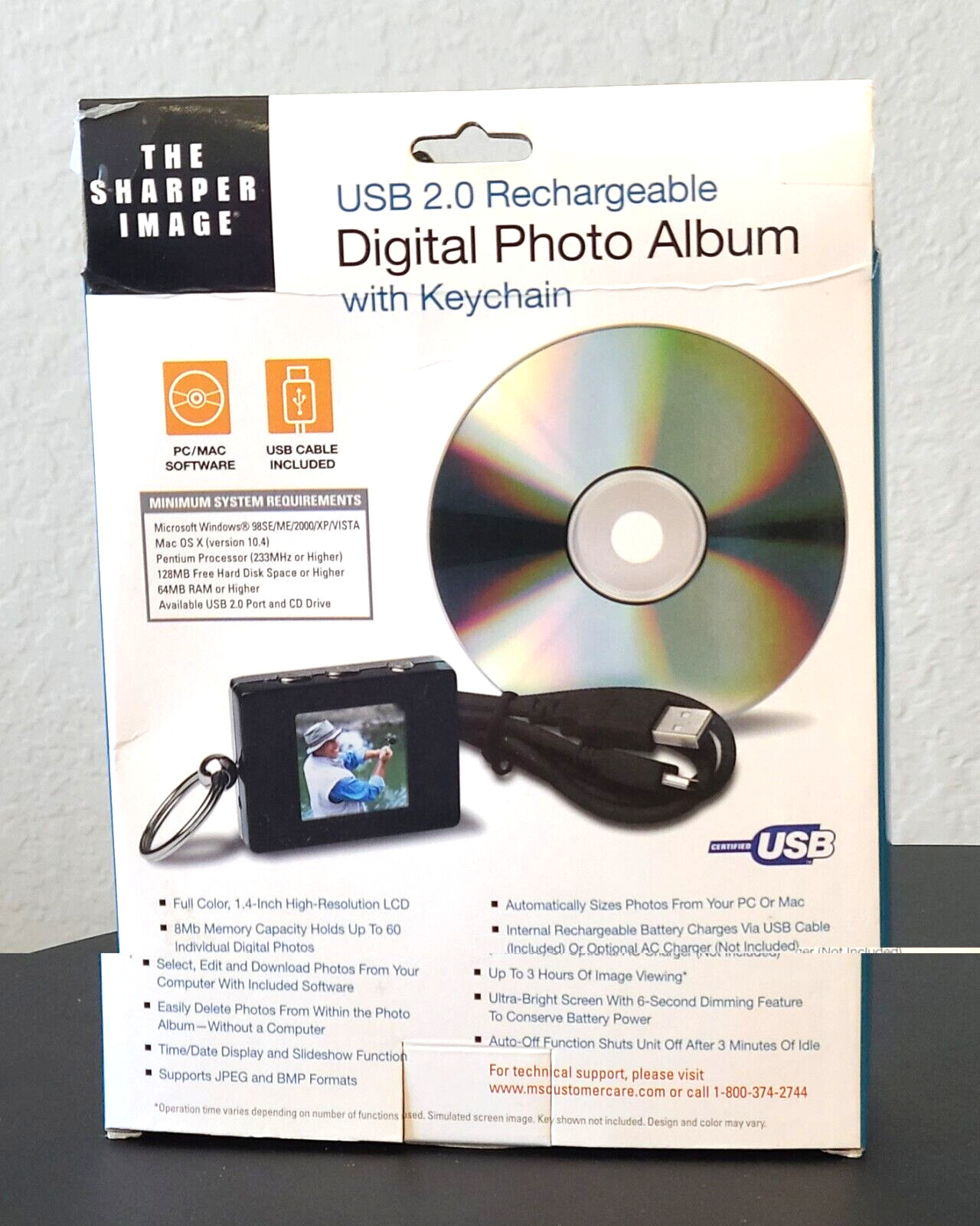 The Sharper Image Rechargeable Digital Photo Album Keychain USB 2.0