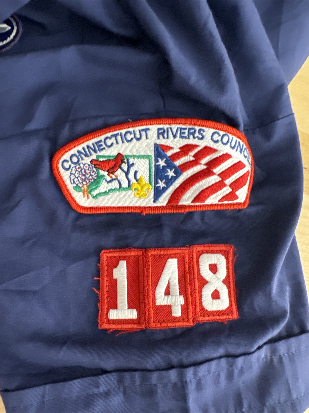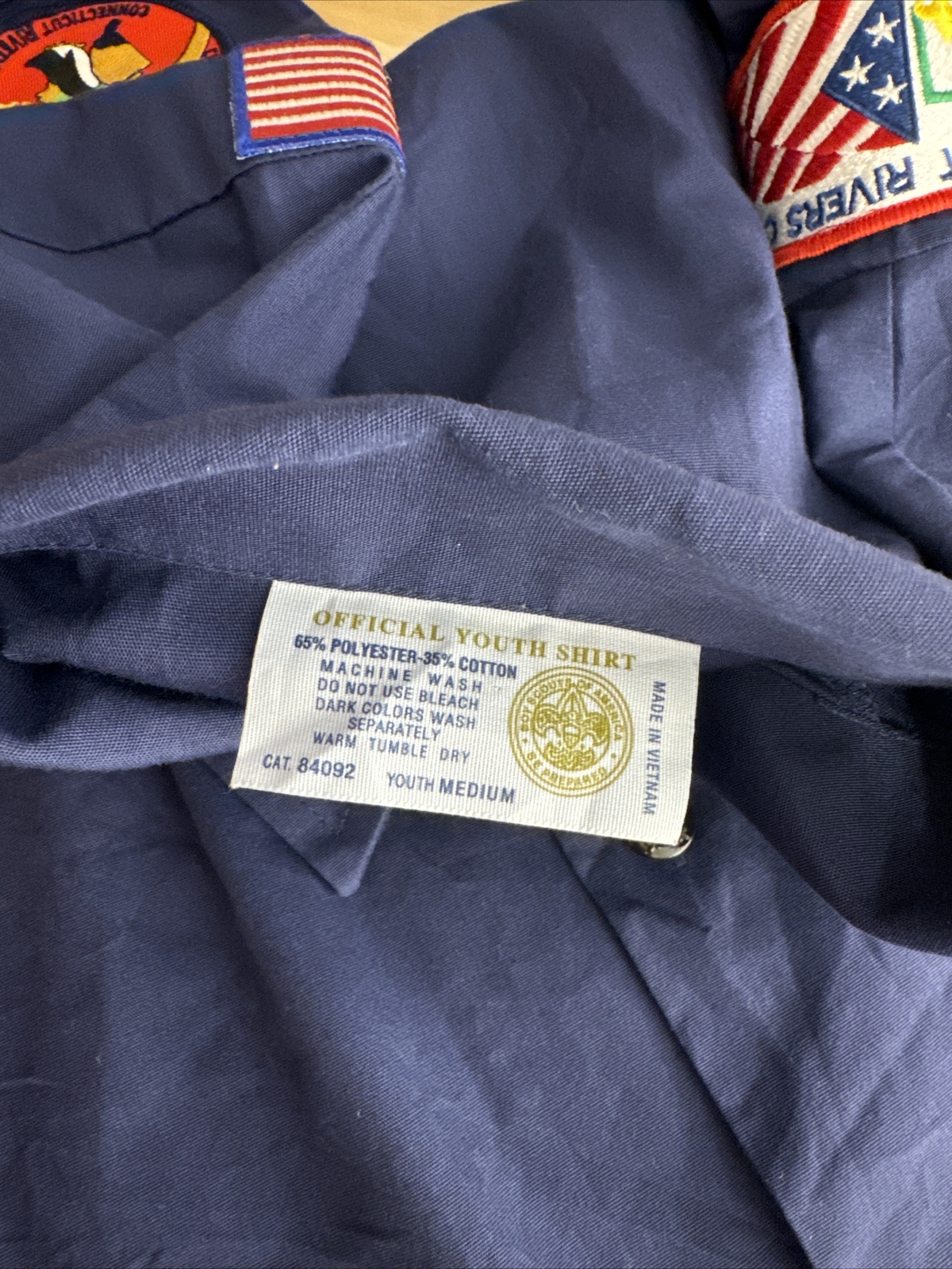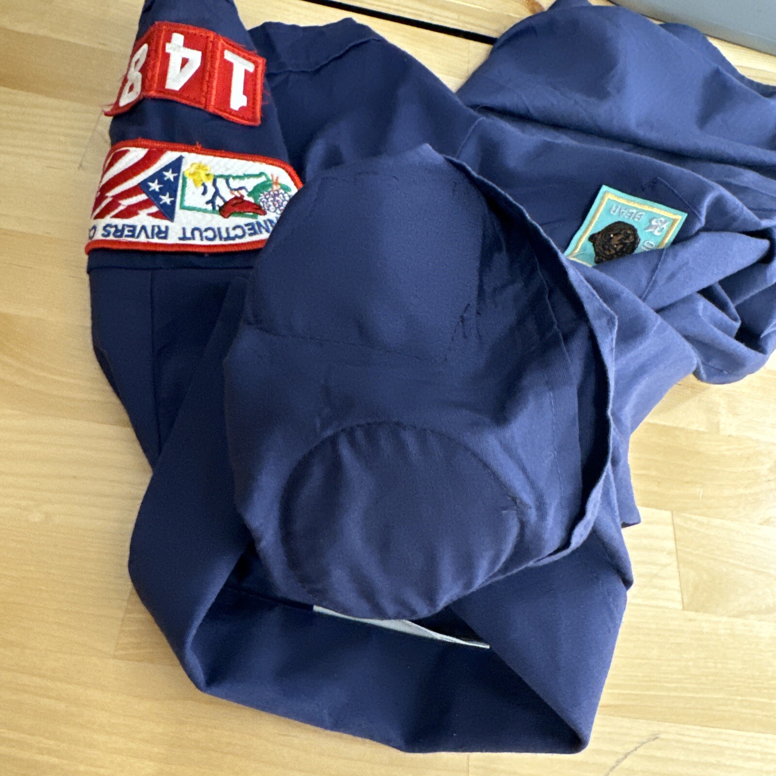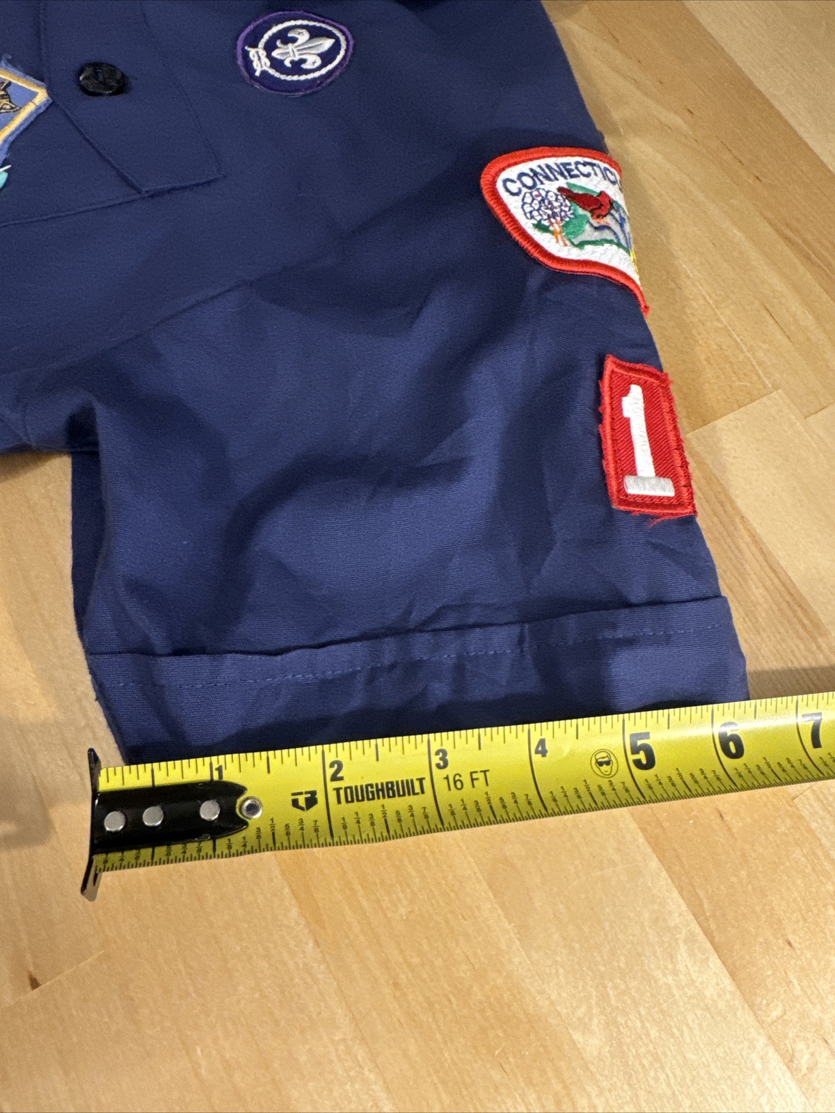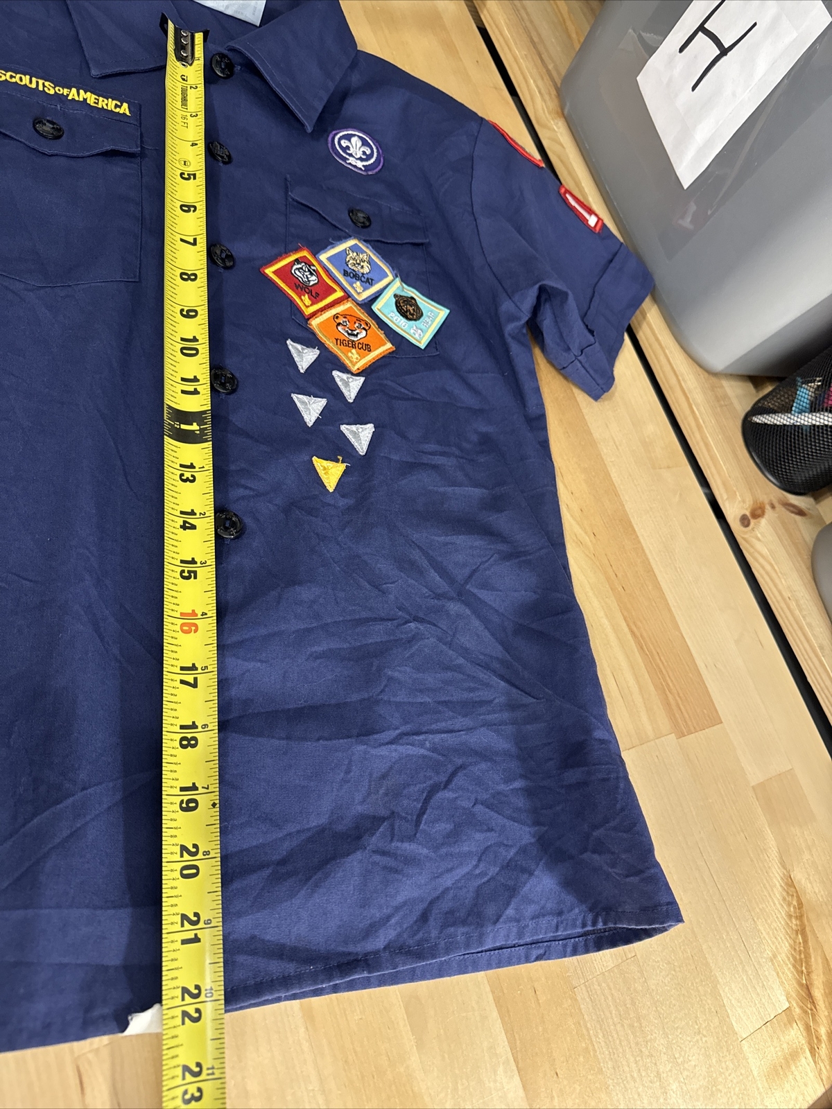 как выглядит Cub Scouts BSA Short Sleeve Uniform Shirt Blue Youth Large Glued Patches Stained фото
