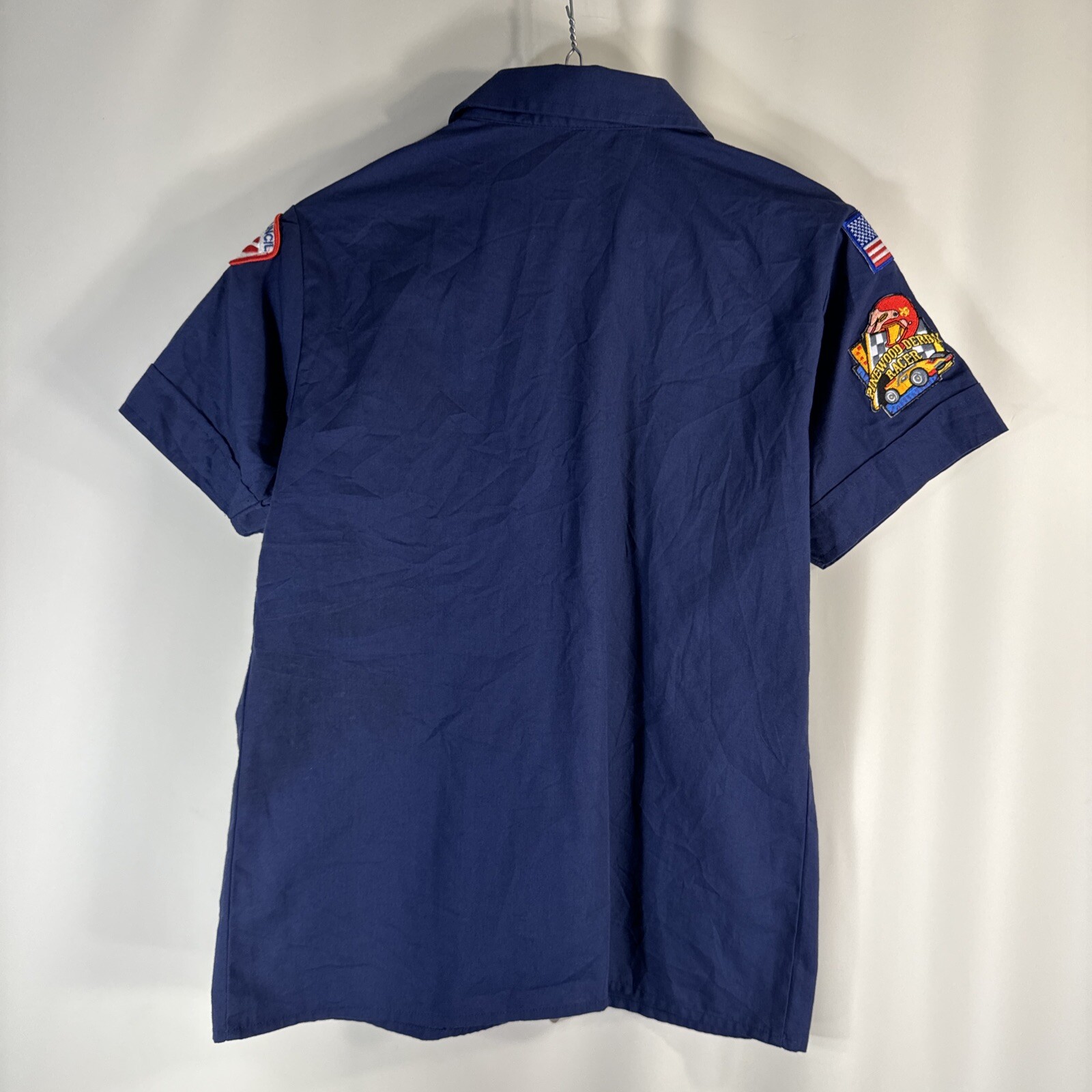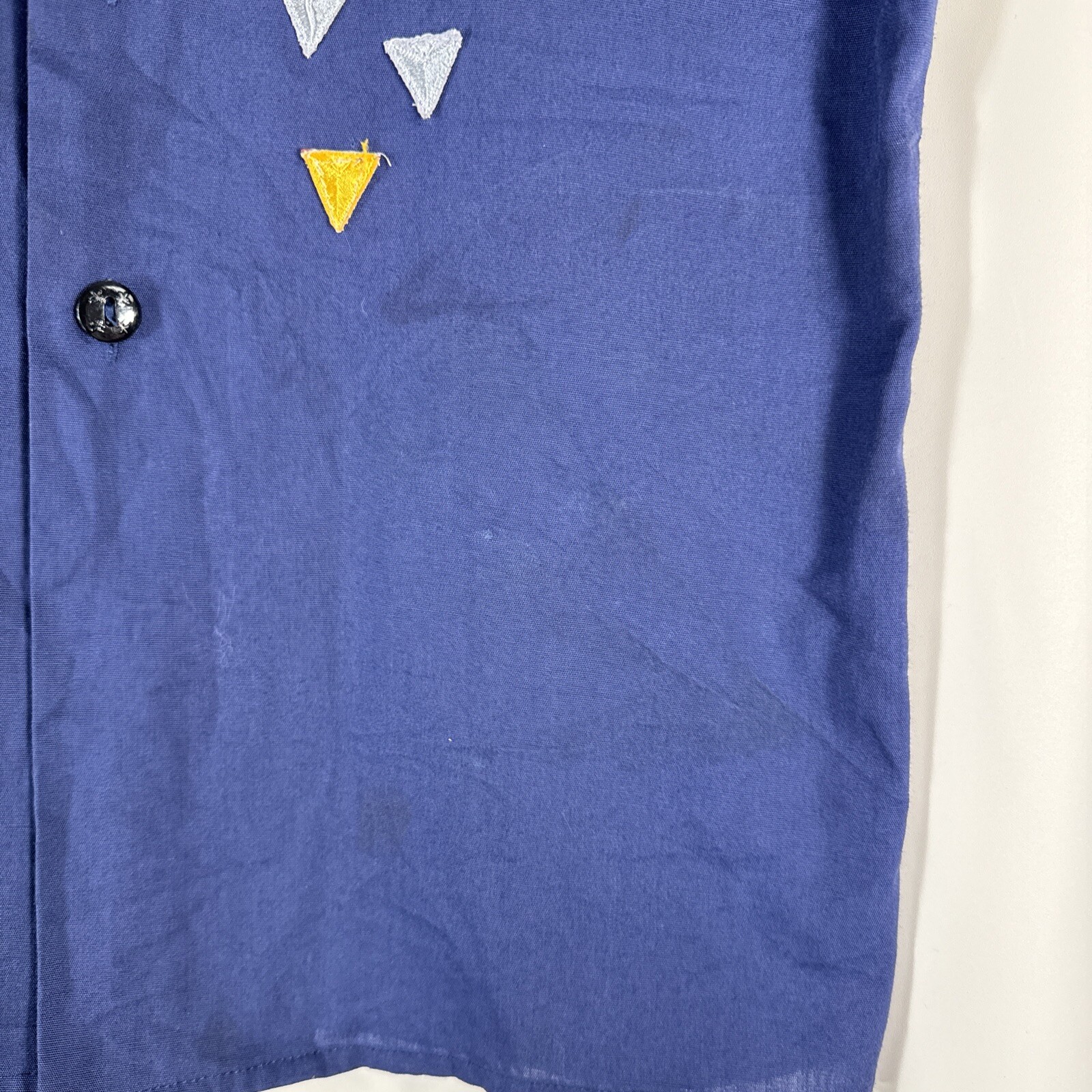 Cub Scouts BSA Short Sleeve Uniform Shirt Blue Youth Large Glued Patches Stained