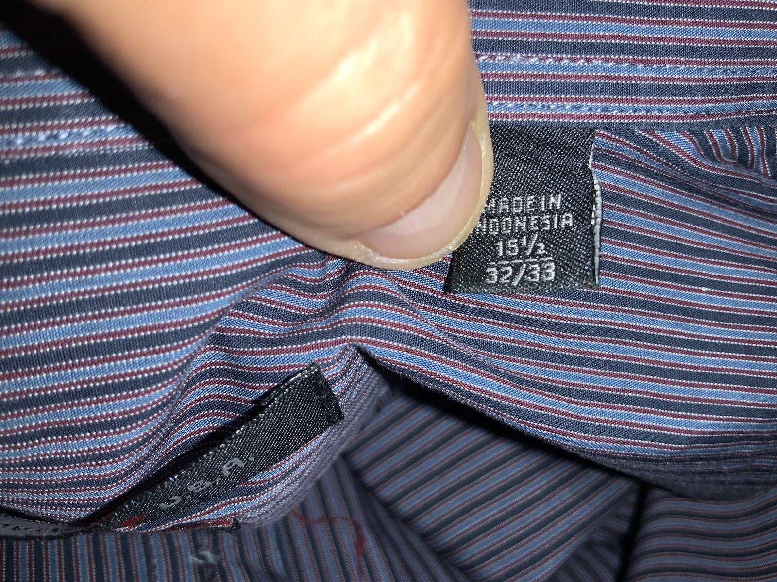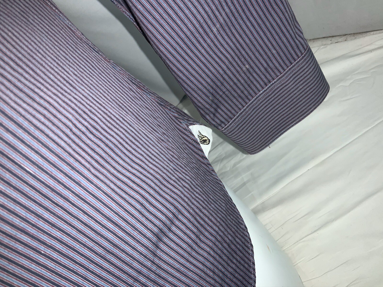 как выглядит John Varvatos Slim Long Sleeve Shirt 15.5 32 Blue Purple Stripe YGI RE2160 фото
