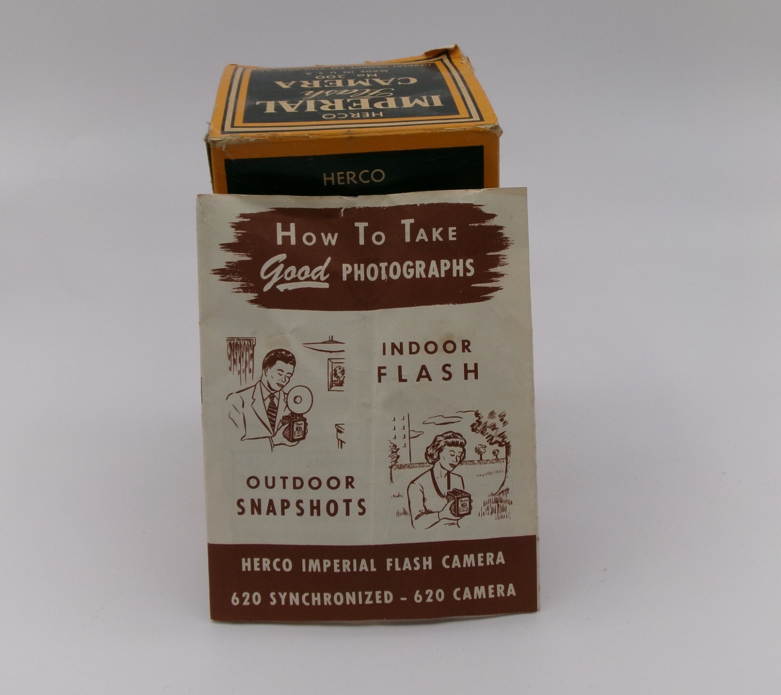 Vintage 1950s Herco Imperial 620 Snap Shot Box Camera With Strap, Box Manual