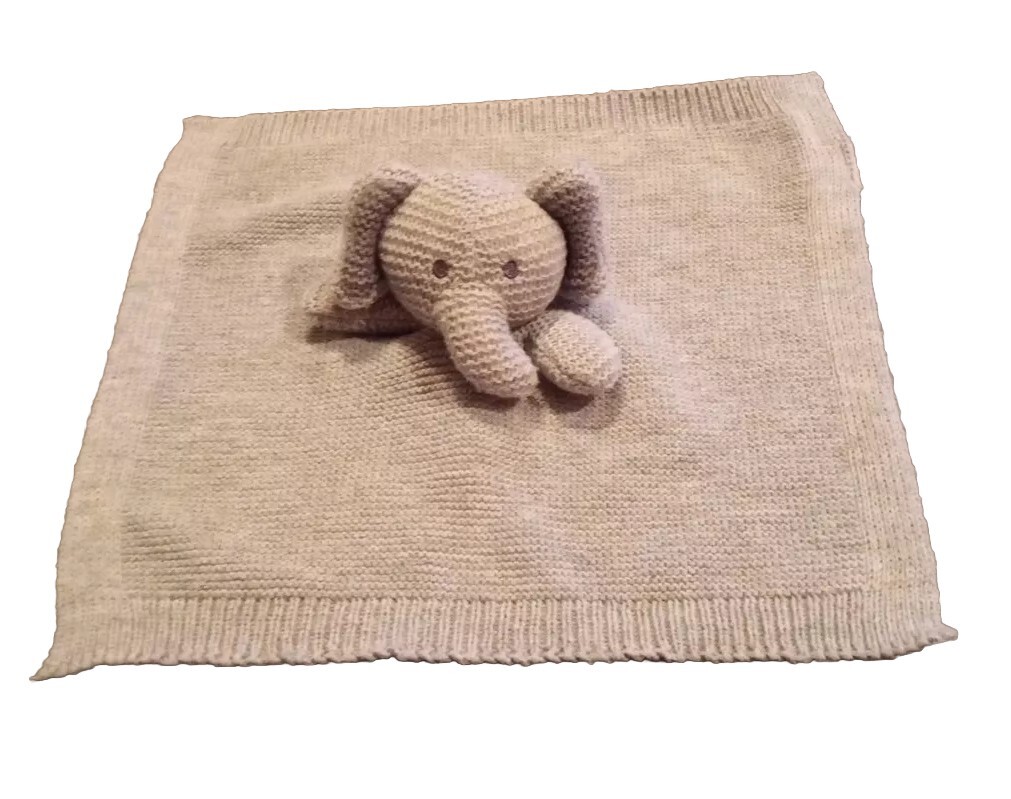 как выглядит Elephant Baby Lovey Knit Plush Comfort Security Blanket Grey фото