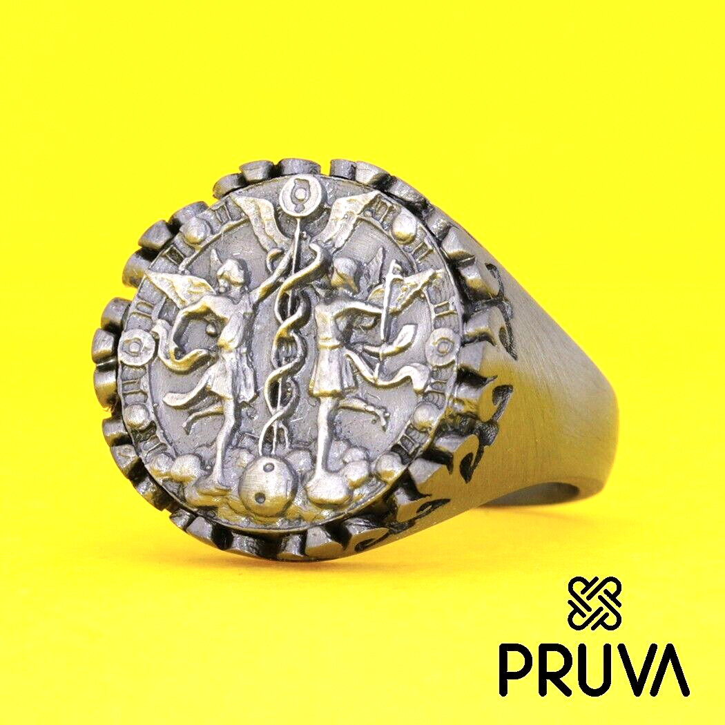как выглядит Y99-L16 CUSTOMIZED 925K SIGNET RING GOLD PLATED ZODIAC SIGN GEMINI HOROSCOPE фото