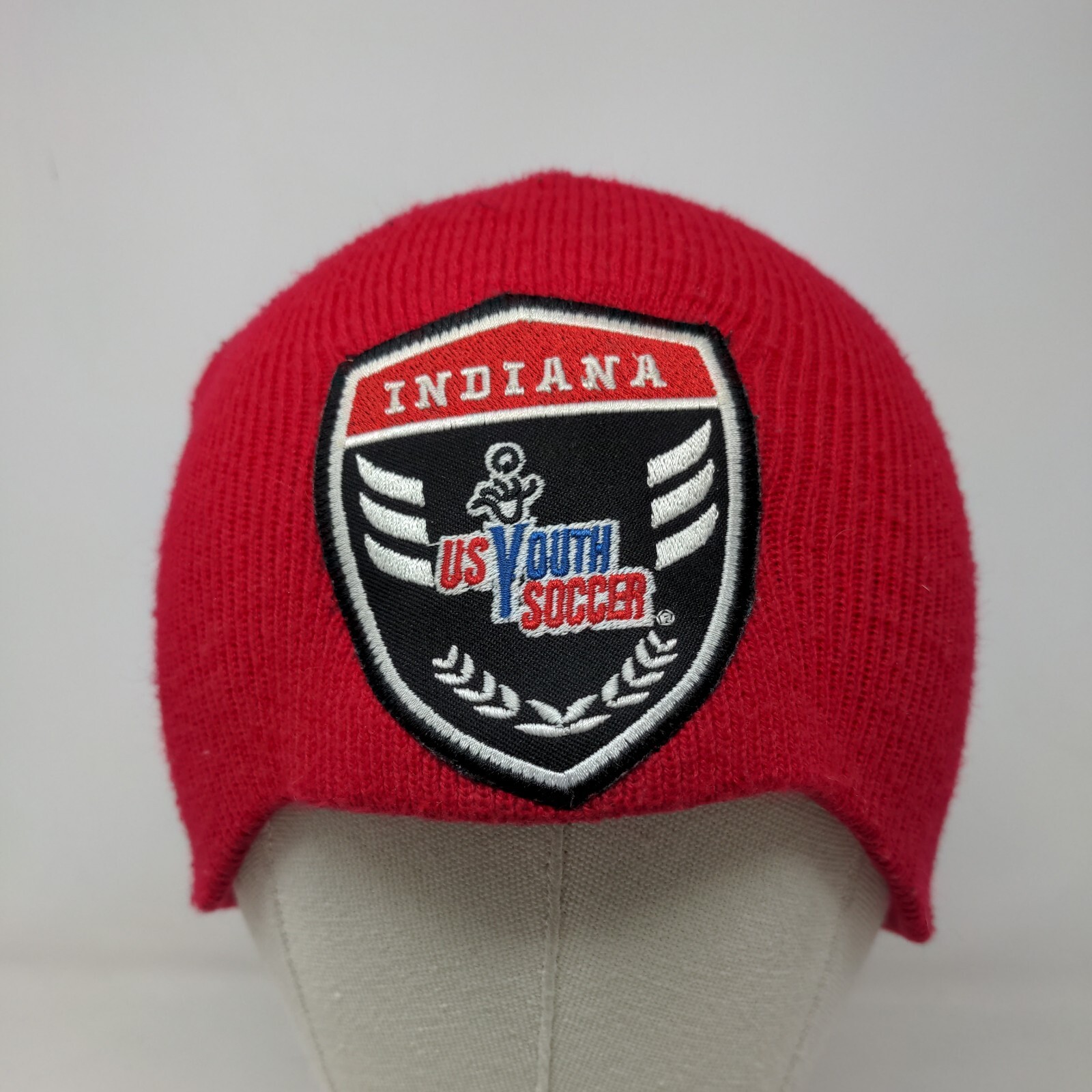 Indiana US Youth Soccer Boy's Knit Beanie Hat Cap Red Embroidered Logo