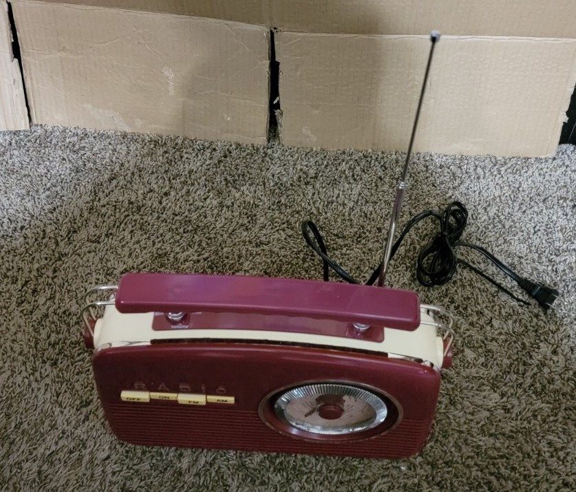 Retro Portable AM / FM Radio By Intertek Model 930637 Red / White Music Decor