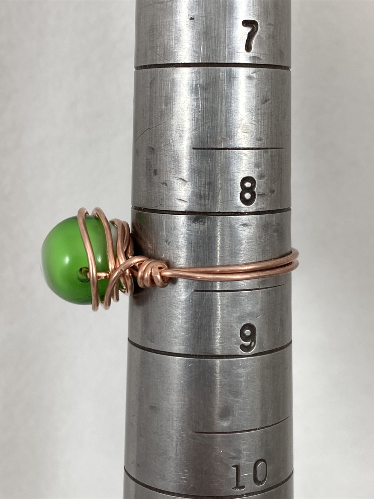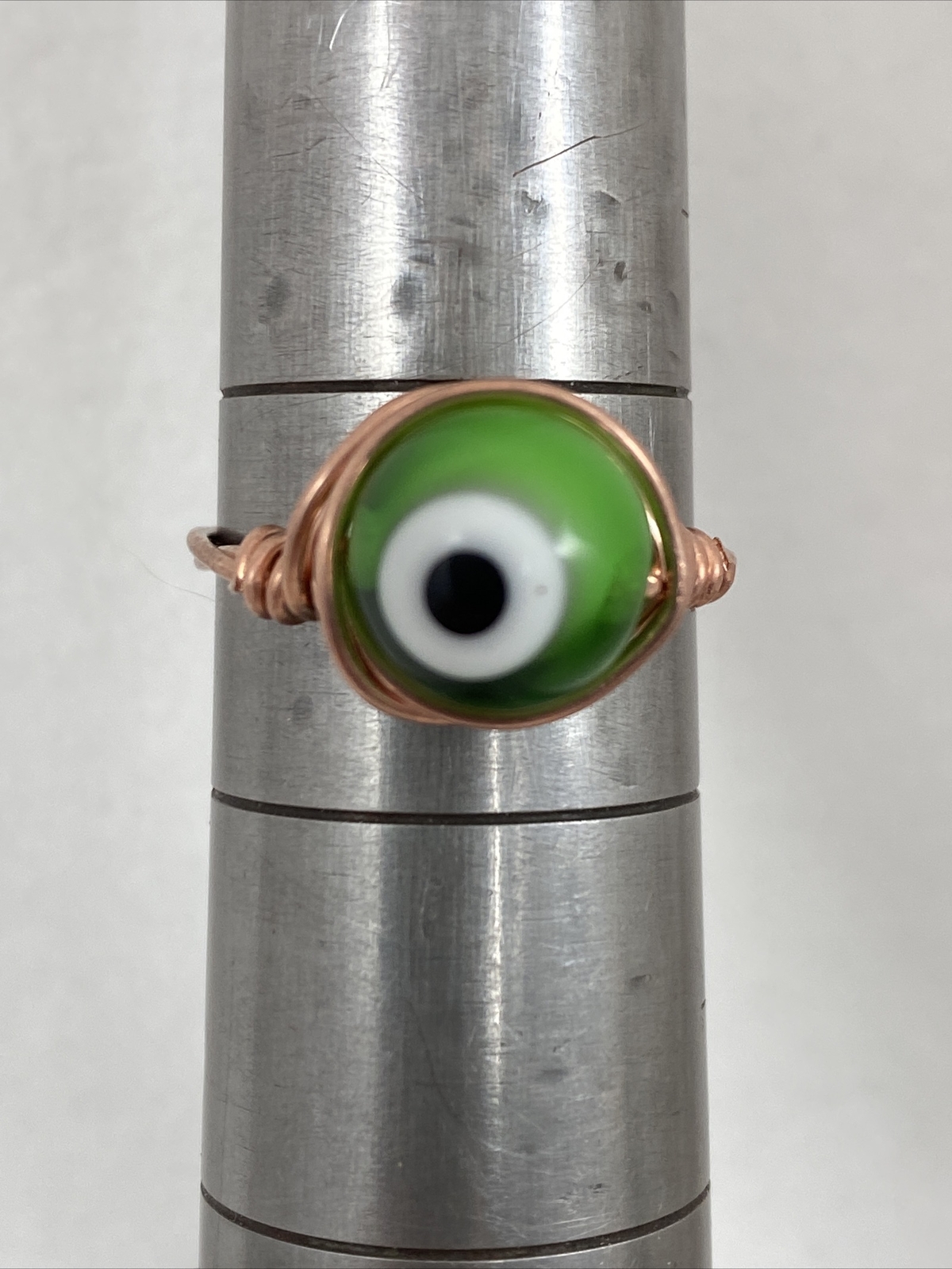 Handmade Copper Wire Wrap Green Evil Eye Glass Bead Ring Size 8 1/2 143