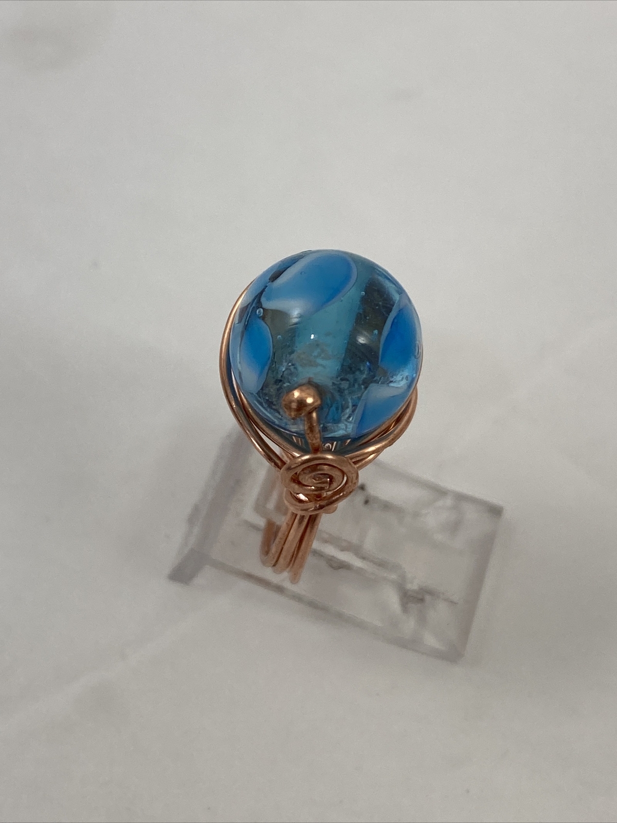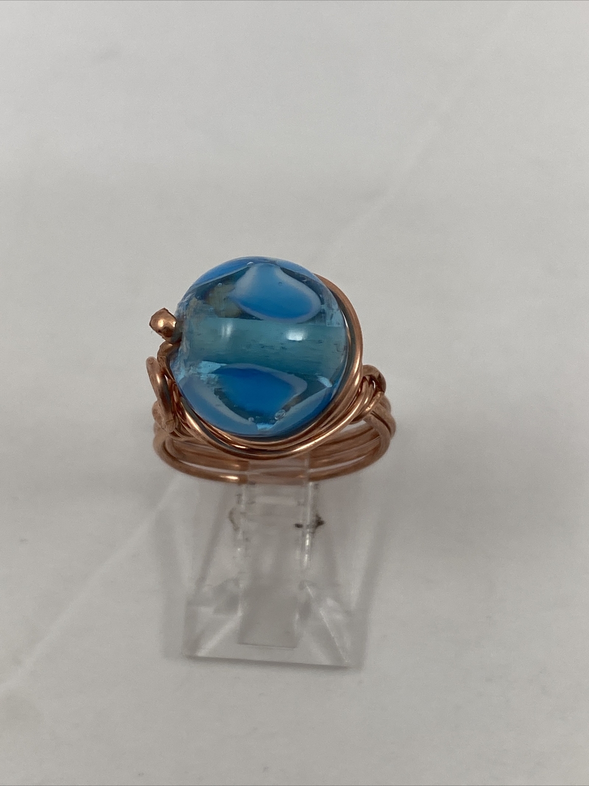 Handmade Copper Wire Wrap Glass Bead Ring Size 5 1/4 112
